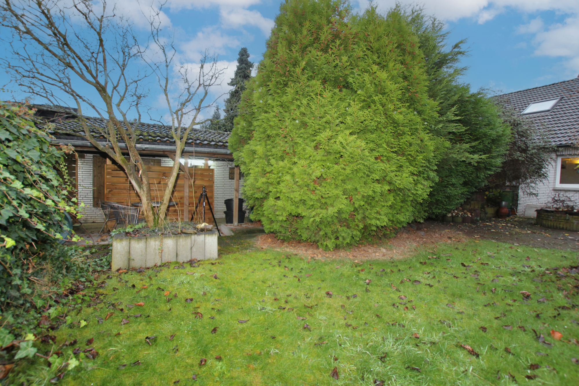 Da der Garten dicht bewachsen ist, geht aus den Bildern leider nicht die tatsächliche Größe hervor. Dieser ist in der Realität wesentlich größer als es auf den Bildern dem ersten Eindruck nach wirkt.