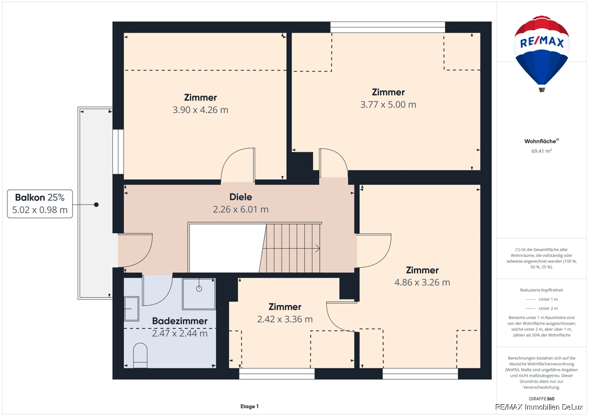 Maklerprovision in Höhe 3,57% inkl. 19 % MwSt. vom Kaufpreis ist mit Abschluss des Kaufvertrages verdient und fällig. RE/MAX erhält einen unmittelbaren Zahlungsanspruch gegenüber dem Käufer (Vertrag zugunsten Dritter, § 328 BGB). Hinweise: Bitte beachten Sie, dass dieses Angebot anhand der uns vom Eigentümer zur Verfügung gestellten Daten und Unterlagen erstellt wurde. Trotz aller Sorgfalt können wir für die Richtigkeit und Vollständigkeit der Angaben keine Gewähr übernehmen. Verbraucherinformationen: Online-Streitbeilegung gemäß Art. 14 Abs. 1 ODR-VO: Die Europäische Kommission stellt eine Plattform zur Online-Streitbeilegung (OS) bereit, die Sie hier finden: ec.europa.eu/consumers/odr