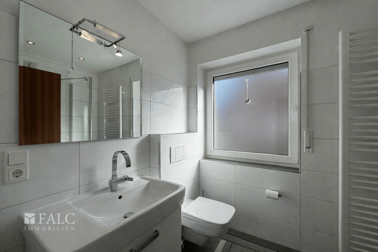 Das Obergeschoss verfügt über ein geräumiges Elternschlafzimmer sowie zwei weitere Zimmer, die sich flexibel als Kinder-, Gäste- oder Arbeitszimmer nutzen lassen. Das helle Hauptbadezimmer ist modern ausgestattet und verfügt über ein großes Tageslichtfenster sowie eine nahezu bodentiefe Dusche.