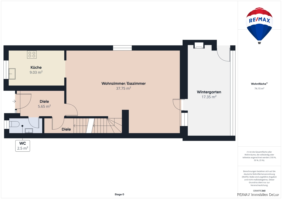 Maklerprovision in Höhe 3,57% inkl. 19 % MwSt. vom Kaufpreis ist mit Abschluss des Kaufvertrages verdient und fällig. RE/MAX erhält einen unmittelbaren Zahlungsanspruch gegenüber dem Käufer (Vertrag zugunsten Dritter, § 328 BGB). Hinweise: Bitte beachten Sie, dass dieses Angebot anhand der uns vom Eigentümer zur Verfügung gestellten Daten und Unterlagen erstellt wurde. Trotz aller Sorgfalt können wir für die Richtigkeit und Vollständigkeit der Angaben keine Gewähr übernehmen. Verbraucherinformationen: Online-Streitbeilegung gemäß Art. 14 Abs. 1 ODR-VO: Die Europäische Kommission stellt eine Plattform zur Online-Streitbeilegung (OS) bereit, die Sie hier finden: ec.europa.eu/consumers/odr