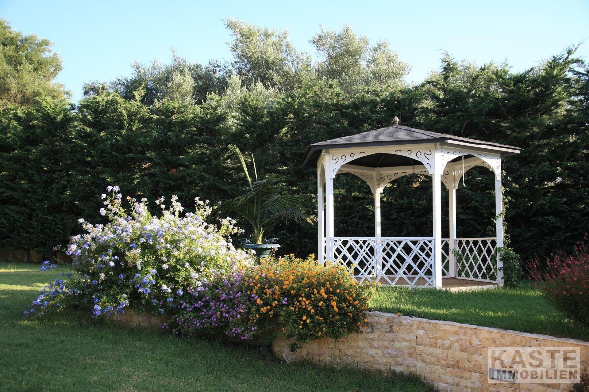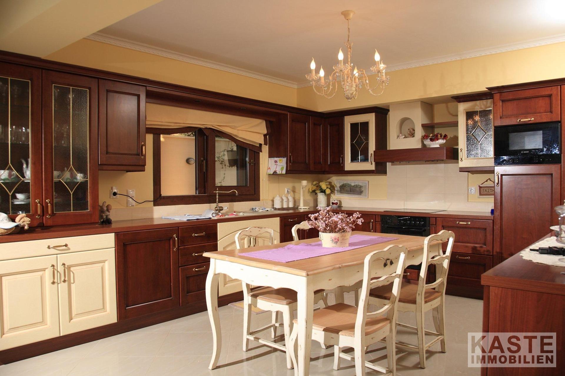 Die großzügig geschnittene Villa verfügt über ein eigenständiges Gästehaus im Erdgeschoss, das eine Fläche von 50 Quadratmetern umfasst. Dieses Gästehaus bietet nicht nur Raum für Besucher, sondern kann auch als zusätzliche Einkommensquelle dienen oder 2-3 Familien die Möglichkeit bieten, das Anwesen für einen begrenzten Zeitraum zu vermieten. Das Apartment mit einem Schlafzimmer beinhaltet eine voll ausgestattete Küche, einen Essbereich und ein Badezimmer.