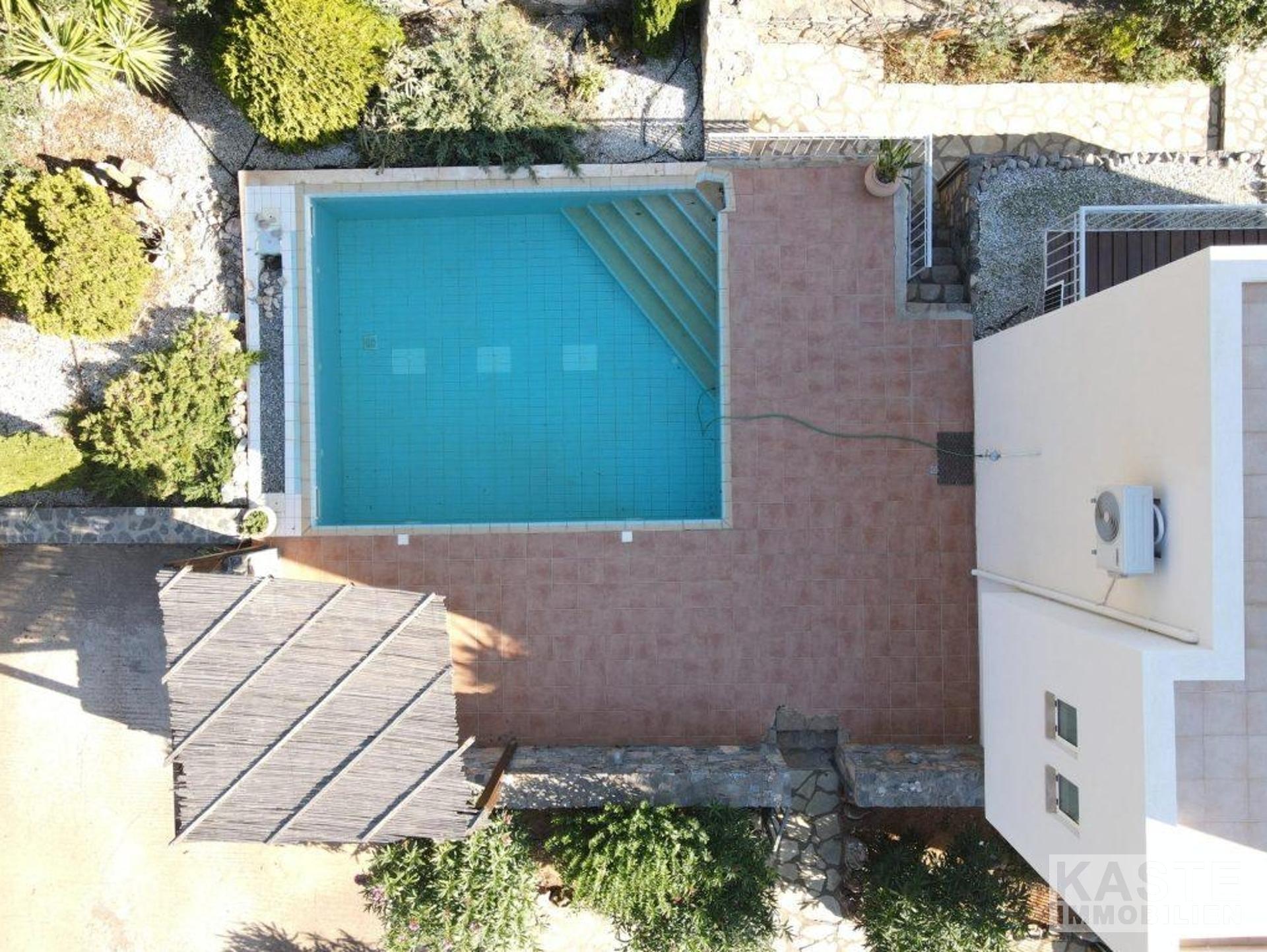 Die stilvoll durchdachte Villa erstreckt sich über drei Ebenen und verfügt über zwei komfortable Schlafzimmer, die sowohl Funktionalität als auch Wohnkomfort vereinen. Im Erdgeschoss finden Sie einen offenen und lichtdurchfluteten Wohn- und Küchenbereich, der durch große Fenster nicht nur einen herrlichen Blick auf die umliegende Natur und das azurblaue Mittelmeer erlaubt, sondern auch für eine angenehme Atmosphäre sorgt. Hier endet der Innenbereich mit einem praktischen Abstellraum.