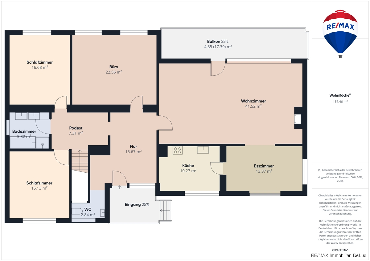 Provision: Die Maklerprovision in Höhe 3,57% inkl. 19% MwSt. vom Kaufpreis ist mit Abschluss des Kaufvertrages verdient und fällig. RE/MAX erhält einen unmittelbaren Zahlungsanspruch gegenüber dem Käufer (Vertrag zugunsten Dritter, § 328 BGB).