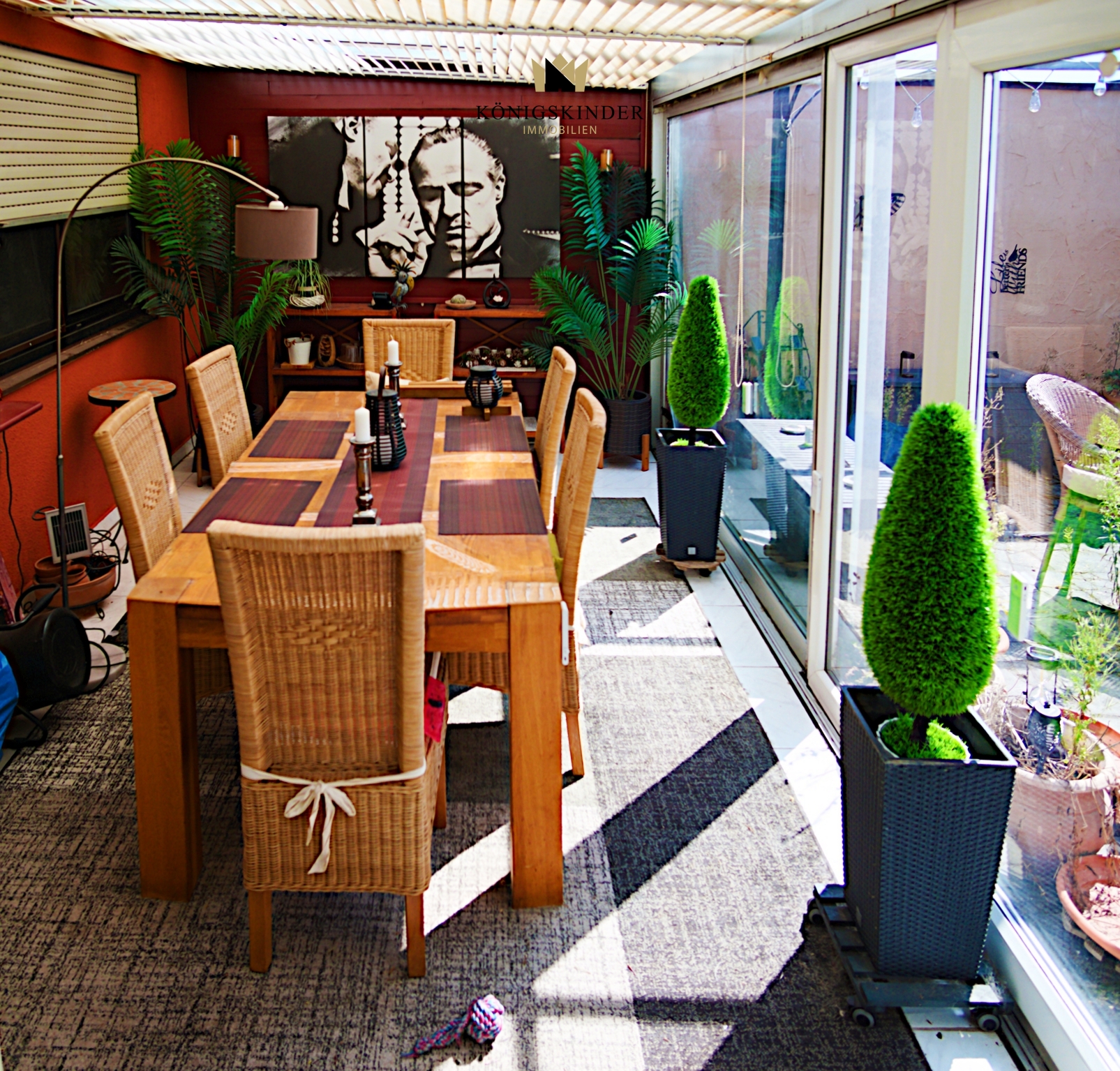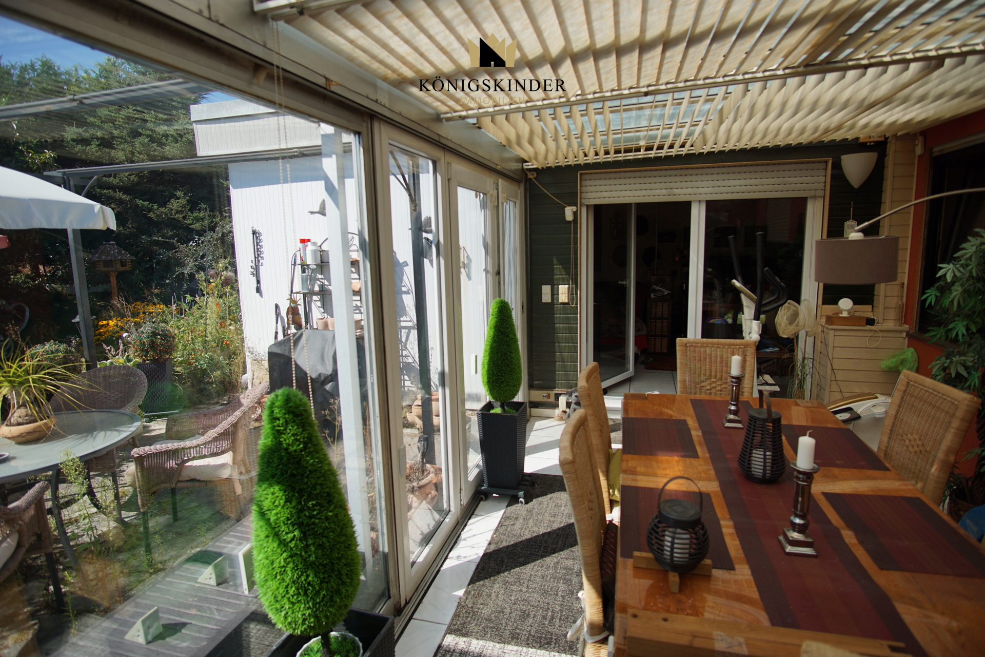 Ein besonderes Highlight ist der beheizte Wintergarten, der den Wohnraum erweitert und zu jeder Jahreszeit ein lichtdurchflutetes Ambiente schafft. Von hier genießen Sie den Blick in den nicht einsehbaren Garten mit ca. 200 m² Fläche – eine echte Wohlfühloase mit viel Privatsphäre.