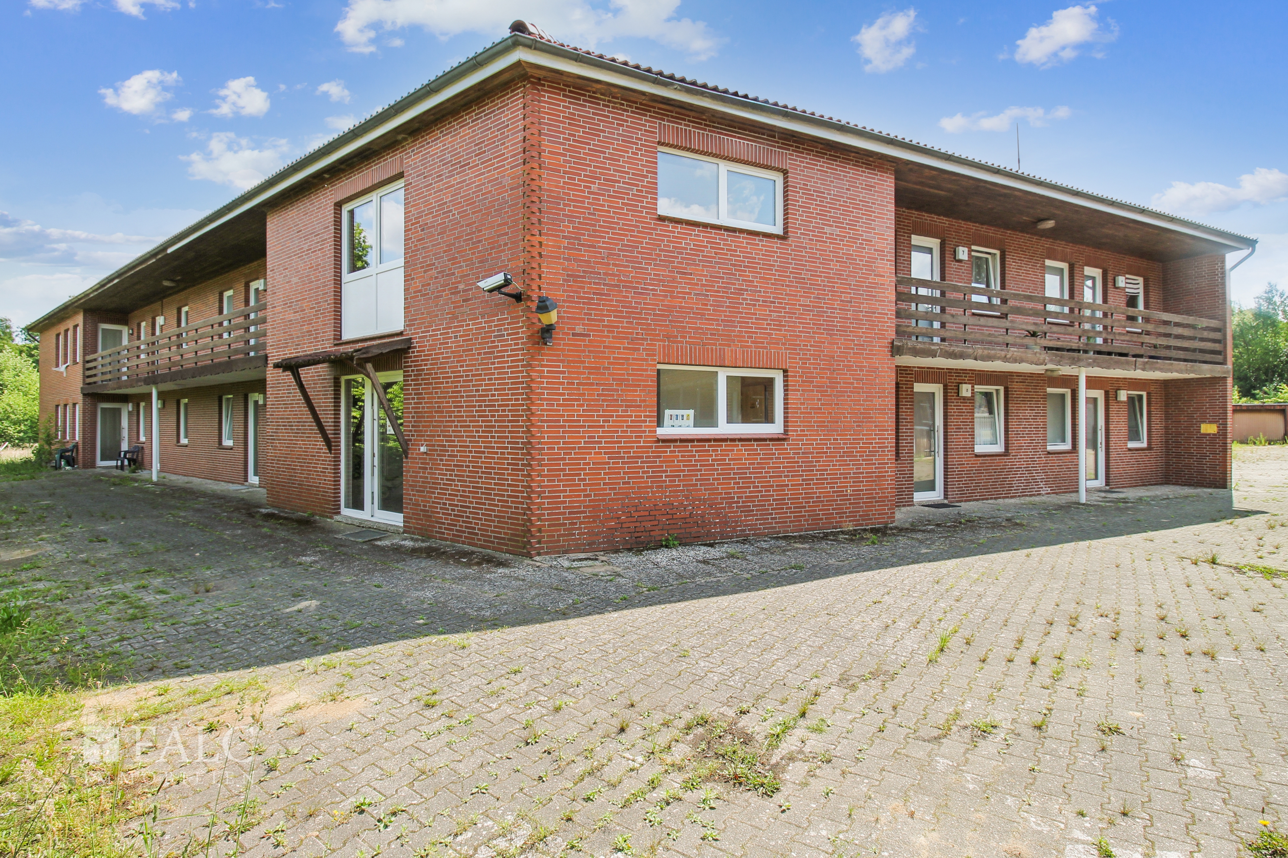 Ein weiteres Highlight des Anwesens ist das Wohngebäude mit insgesamt zehn Wohneinheiten und einer Fläche von ca. 692 m². Diese Einheiten sind derzeit an die Gemeinde Suderburg vermietet und sorgen somit für eine attraktive, laufende Einnahmequelle. Das Wohngebäude mit den zehn Wohneinheiten präsentiert sich in einer ansprechenden Außenansicht. Die Fassade ist harmonisch in das Gesamtbild des Resthofs eingebettet und vermittelt einen einladenden, ländlichen Charme. Großzügige Fenster sorgen für helle, freundliche Räume und unterstreichen die angenehme Wohnatmosphäre.