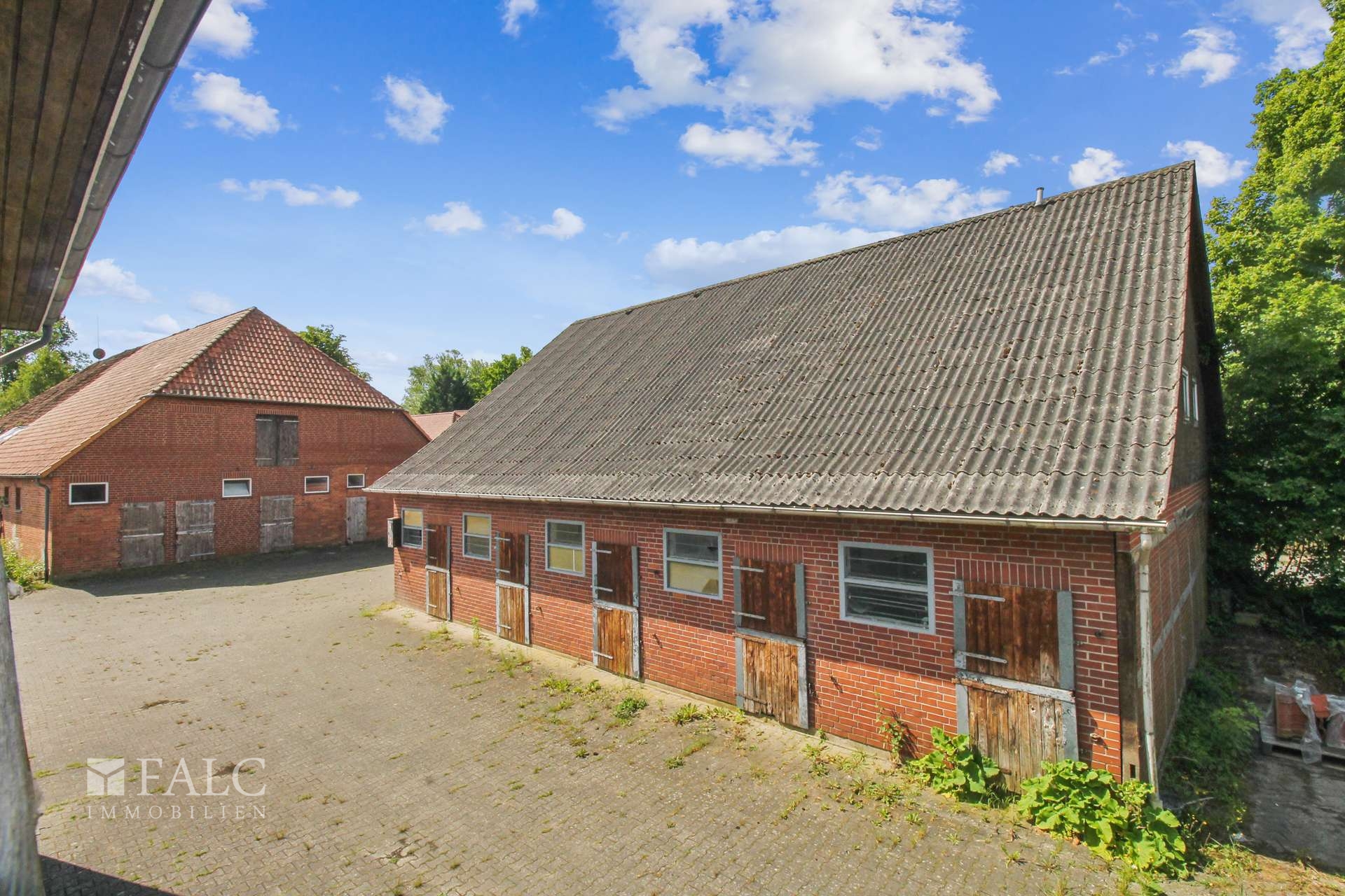 Für Tierliebhaber oder Pferdehalter steht ein separates Gebäude mit ca. 220 m² zur Verfügung, das bereits mit mehreren Pferdeboxen ausgestattet ist – ideal für die private oder gewerbliche Pferdehaltung.
