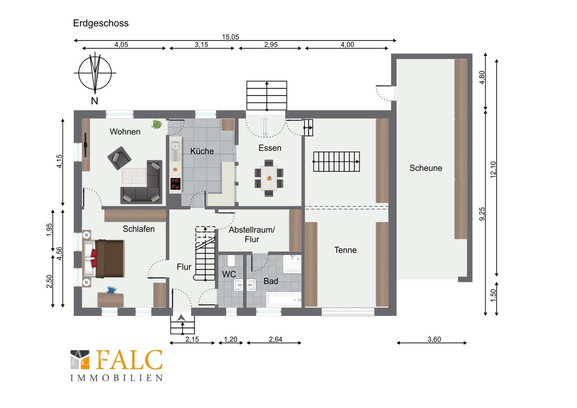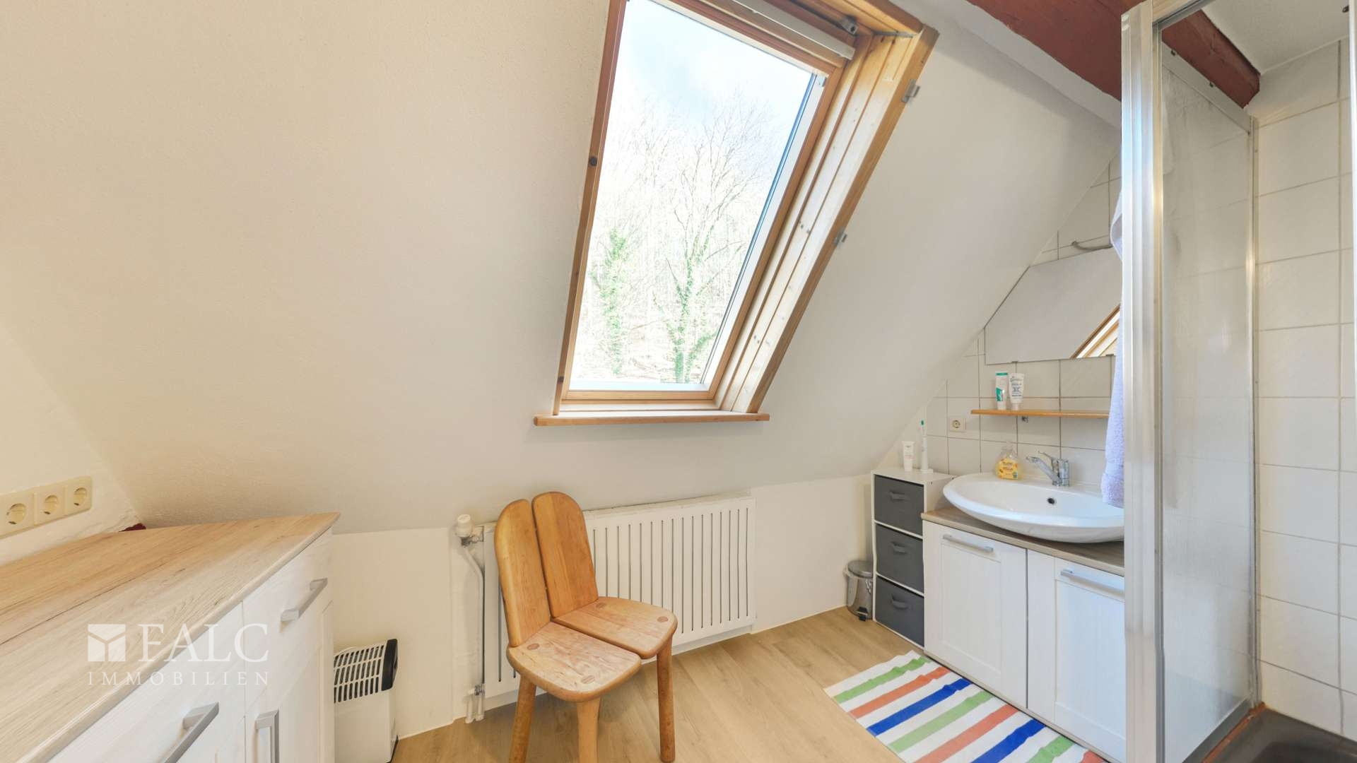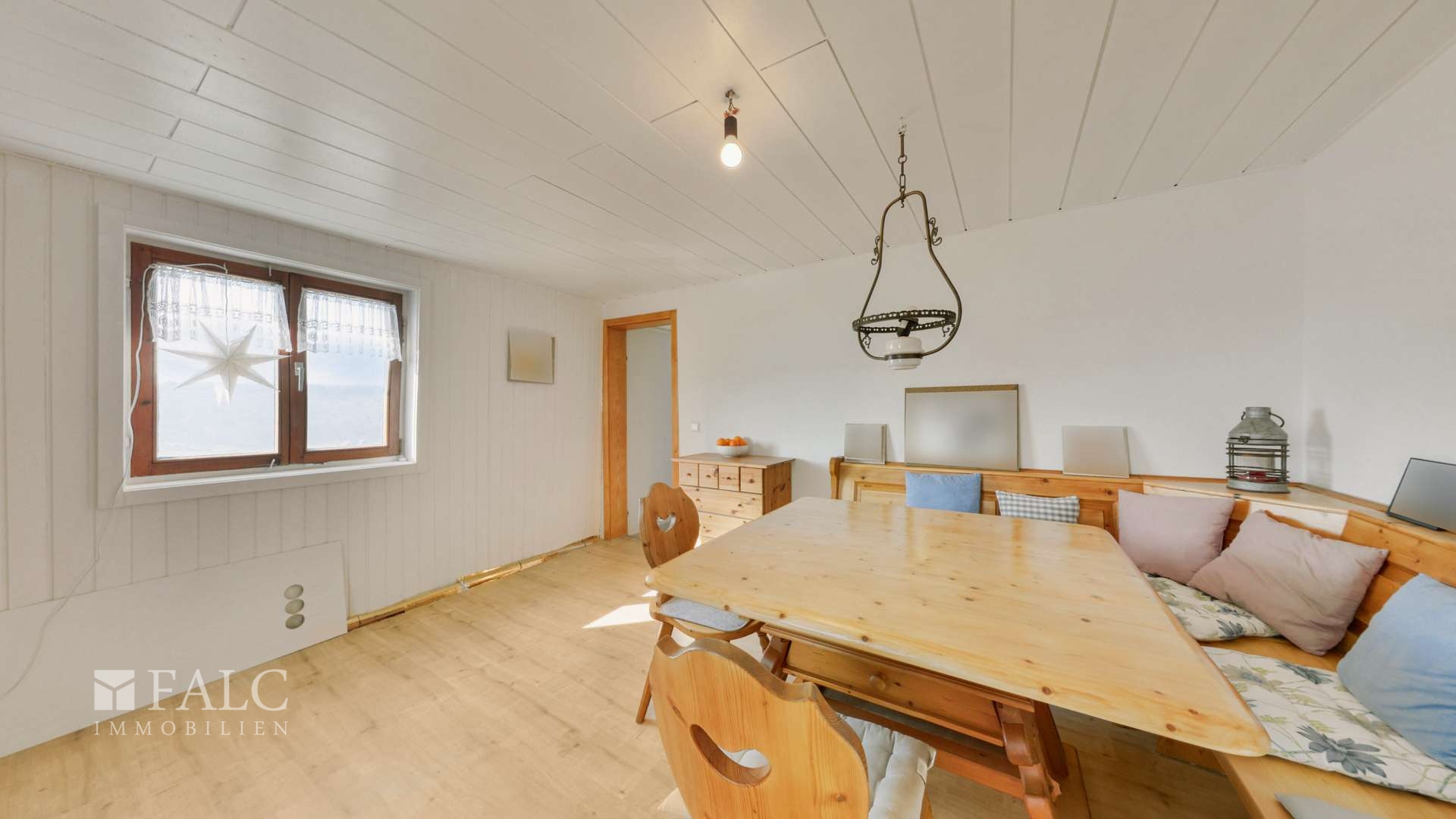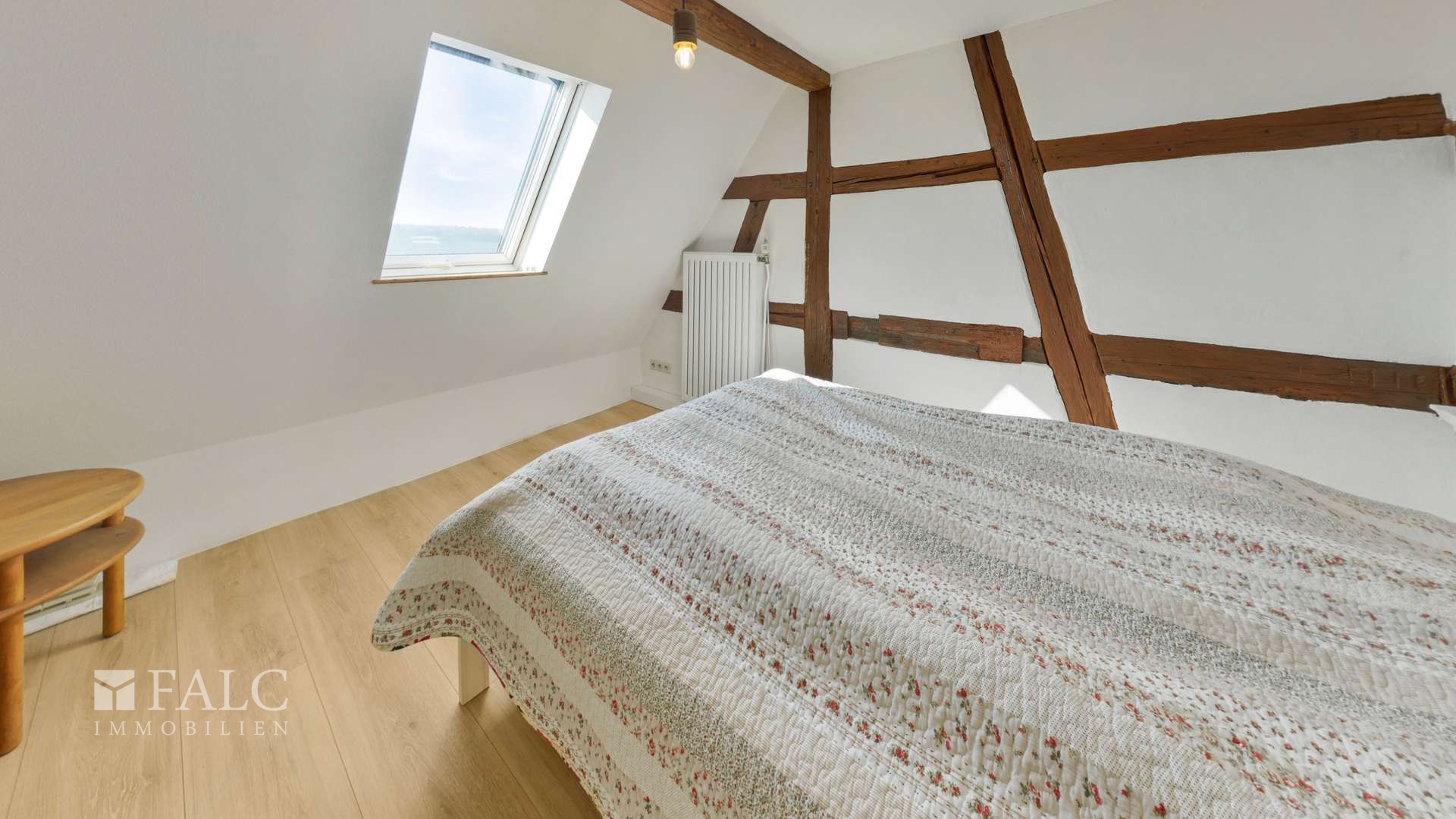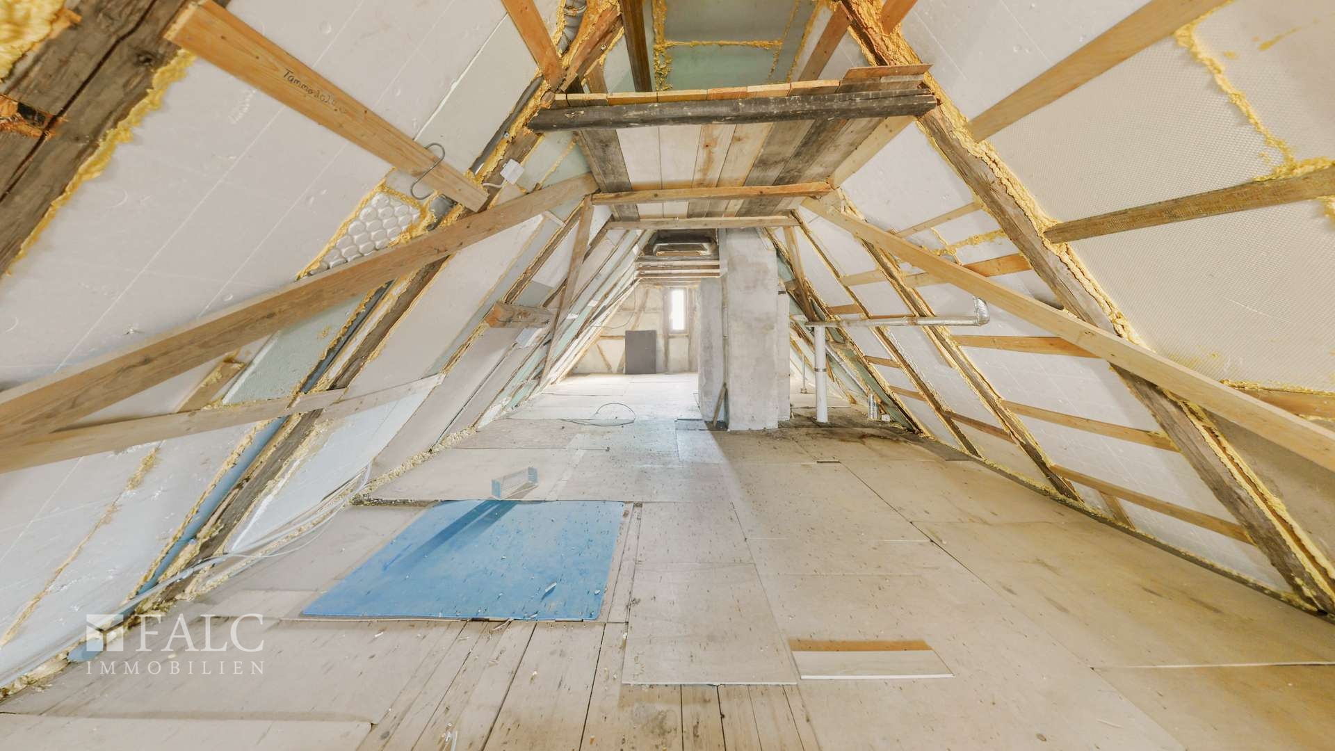 Im Dachgeschoss befindet sich ein großes Schlafzimmer mit teilweise offenen Fachwerkwänden, was für eine behagliche Atmosphäre sorgt. Auch das angrenzende Kinderzimmer punktet mit sichtbarem Gebälk. Ein Duschbad, sowie ein separates WC, ein Heizraum und ein Abstellraum stehen ebenfalls zur Verfügung. Vom Dachgeschoss aus haben Sie Zugang zum Raum über der Tenne. Dieser Teil des Hauses beeindruckt mit seiner hohen Decke und kann zu einem großzügigen und schönen Zimmer ausgebaut werden. Zudem steht noch ein großer, gedämmter Spitzboden für weitere Ausbaureserve oder Lagerfläche zur Verfügung. Ihre Wohnträume finden hier ein Zuhause!