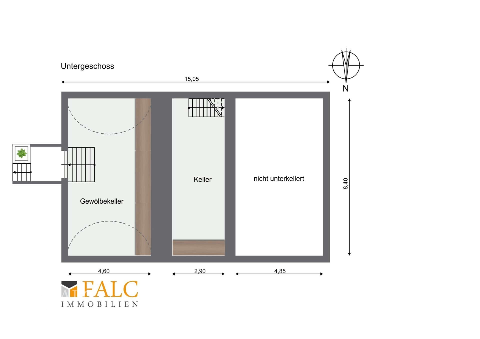 *Untergeschoss - Großer Gewölbekeller mit Außenzugang ca. 39 m², Kuppelhöhe ca. 2,90 m - zweiter Keller mit Zugang über die Tenne