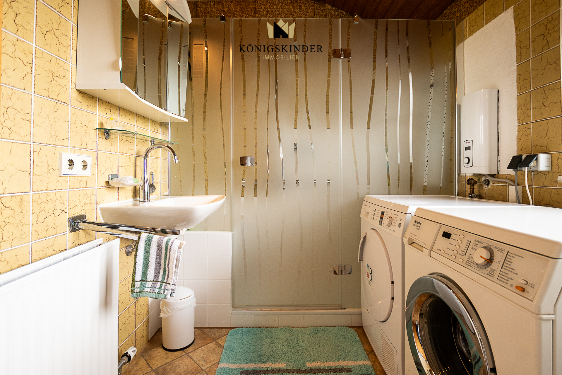 Das Haus verfügt über vier helle und freundliche Zimmer, die viel Raum für Familie, Gäste oder ein Home-Office bieten. Das Badezimmer ist mit einem Fenster ausgestattet, was für viel Tageslicht sorgt, und verfügt über eine große, barrierefreie Dusche sowie ein Waschbecken. Das separate WC bietet zusätzlichen Komfort. Ein zweites WC wurde im Erdgeschoß realisiert. Die Küche lädt zum Kochen und Verweilen ein, während der Keller zusätzlichen Stauraum bietet – hier besteht noch Renovierungsbedarf, um das volle Potenzial zu entfalten, da der Keller leicht feuchte Wände hat.