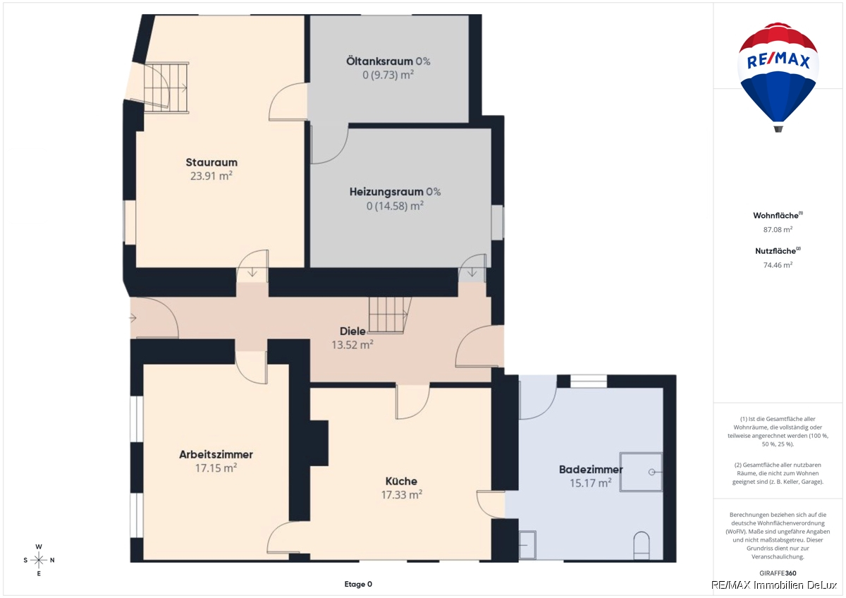 Maklerprovision in Höhe 3,57% inkl. 19 % MwSt. vom Kaufpreis ist mit Abschluss des Kaufvertrages verdient und fällig. RE/MAX erhält einen unmittelbaren Zahlungsanspruch gegenüber dem Käufer (Vertrag zugunsten Dritter, § 328 BGB). Hinweise: Bitte beachten Sie, dass dieses Angebot anhand der uns vom Eigentümer zur Verfügung gestellten Daten und Unterlagen erstellt wurde. Trotz aller Sorgfalt können wir für die Richtigkeit und Vollständigkeit der Angaben keine Gewähr übernehmen. Verbraucherinformationen: Online-Streitbeilegung gemäß Art. 14 Abs. 1 ODR-VO: Die Europäische Kommission stellt eine Plattform zur Online-Streitbeilegung (OS) bereit, die Sie hier finden: ec.europa.eu/consumers/odr