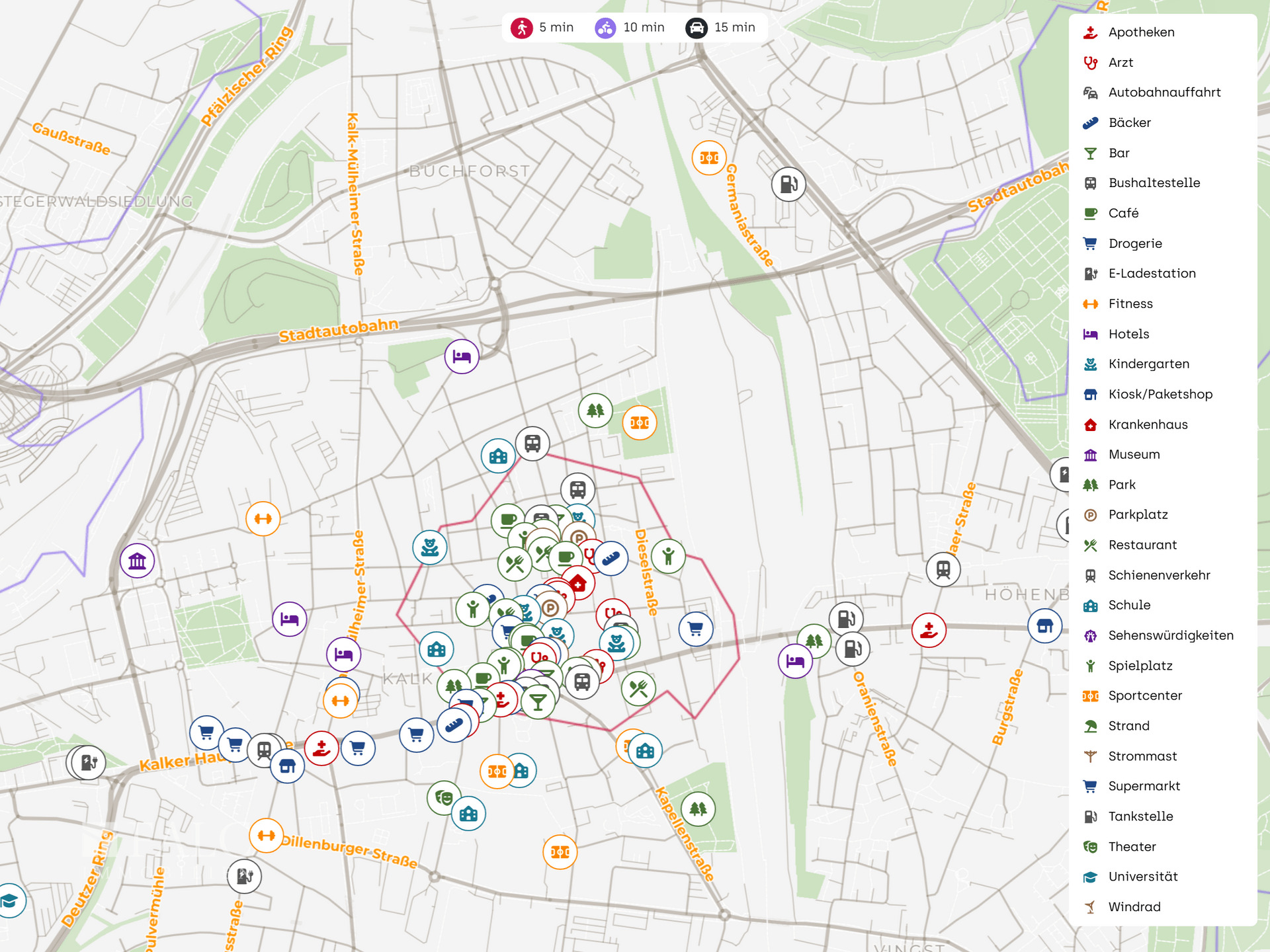 Die Immobilie befindet sich in einer lebendigen und gut angebundenen Umgebung in Köln. In unmittelbarer Nähe finden Sie eine Vielzahl an Einkaufsmöglichkeiten, darunter einen Netto Marken-Discount und weitere Supermärkte, die nur wenige Gehminuten entfernt sind. Für den täglichen Bedarf sind Sie somit bestens versorgt.
