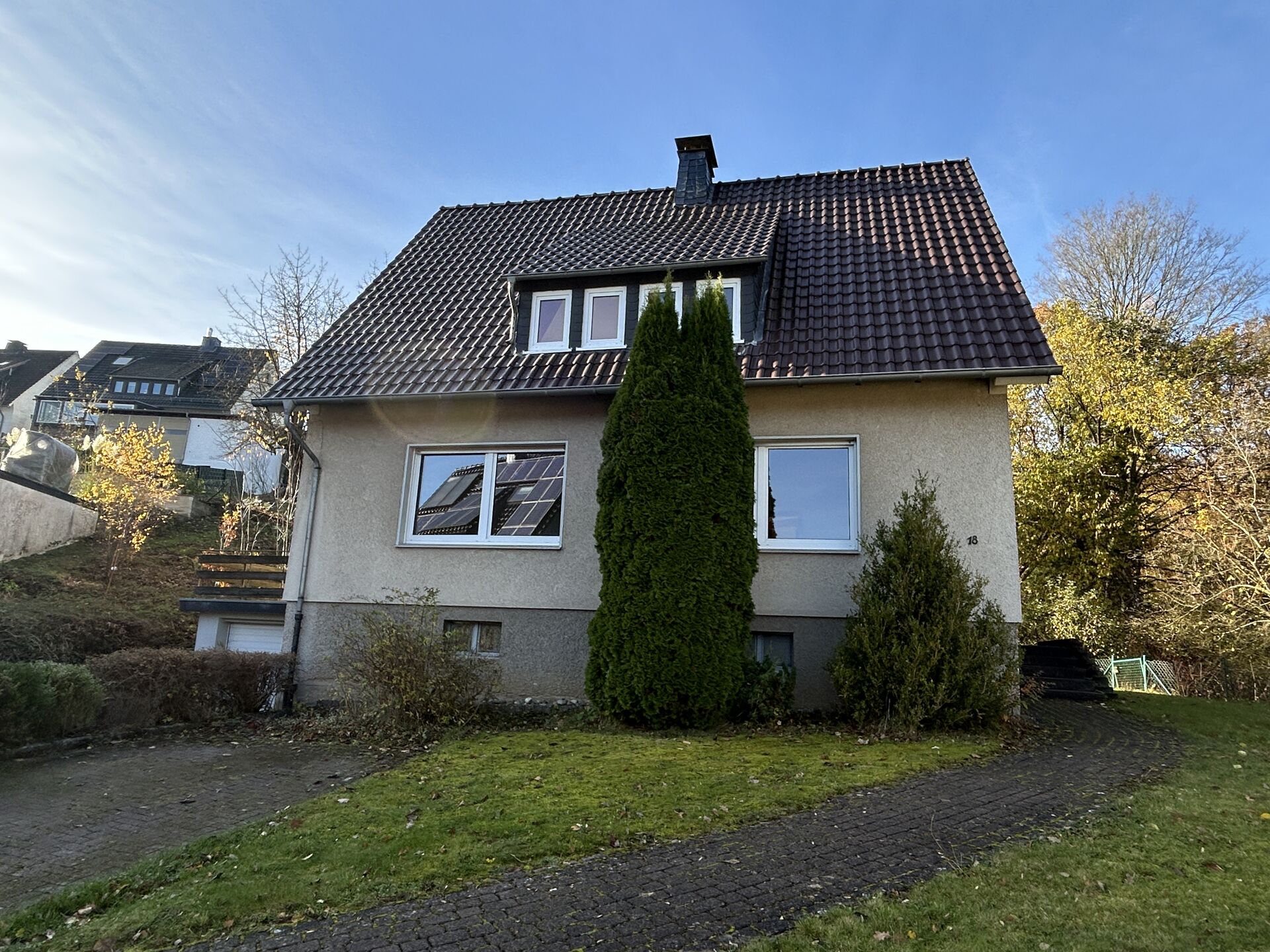 Dieses Einfamilienhaus befindet sich in einer ruhigen Nebenstraße am Ortsrand von Marsberg und bietet Ihnen ein angenehmes Wohnambiente in naturnaher Lage. Die Immobilie verfügt über eine Garage sowie einen zusätzlichen Stellplatz, die ausreichend Platz für Ihre Fahrzeuge bieten. Genießen Sie entspannte Stunden auf der großzügigen Terrasse oder dem Balkon, die zum Verweilen im Freien einladen. Die ruhige Umgebung sorgt für eine hohe Lebensqualität und ermöglicht Ihnen Erholung abseits des Trubels. Insgesamt präsentiert sich dieses Haus als idealer Rückzugsort für Familien oder Paare, die Wert auf Ruhe und Komfort legen.