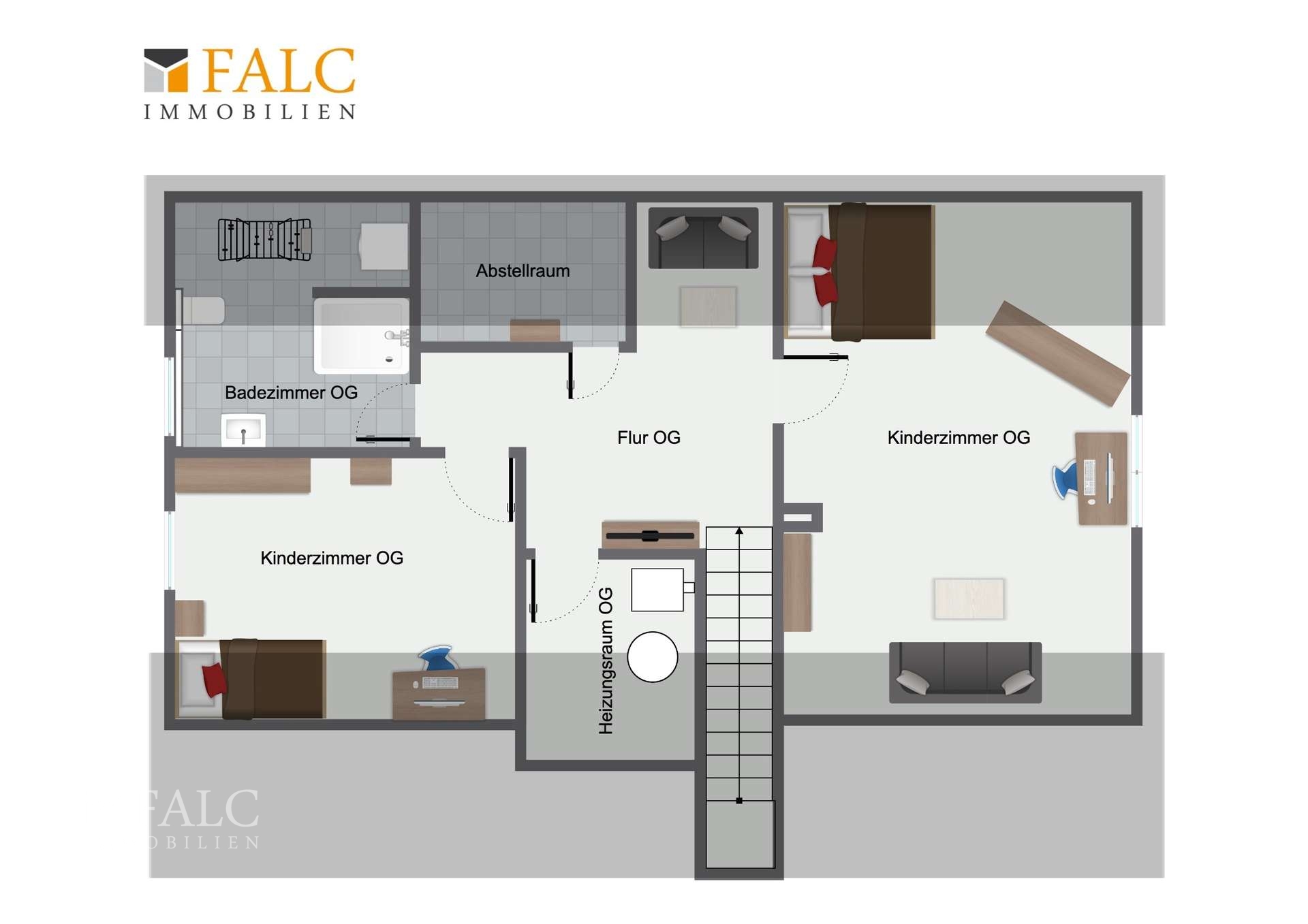 Im Obergeschoss erwarten Sie schließlich zwei gemütliche Kinderzimmer, die viel Platz zum Spielen, Lernen und Entfalten bieten.