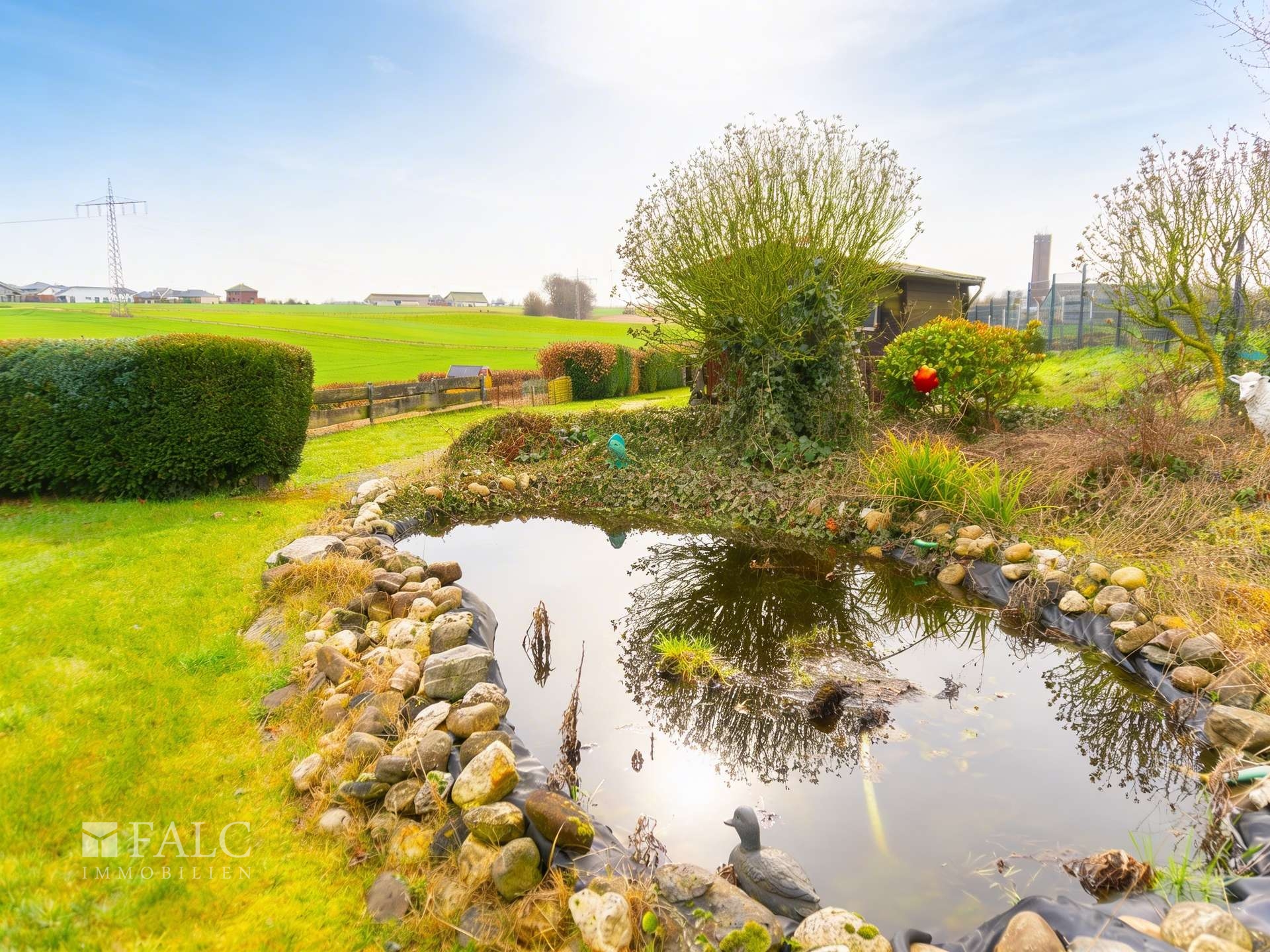 Ein besonderes Highlight dieser Immobilie ist der weitläufige Gartenbereich mit zwei idyllischen Teichen, der eine einzigartige Atmosphäre schafft und vielfältige Gestaltungsmöglichkeiten bietet. Ergänzt wird der Außenbereich durch einen großen, überdachten Innenhof, der ideal für gesellige Stunden genutzt werden kann.
