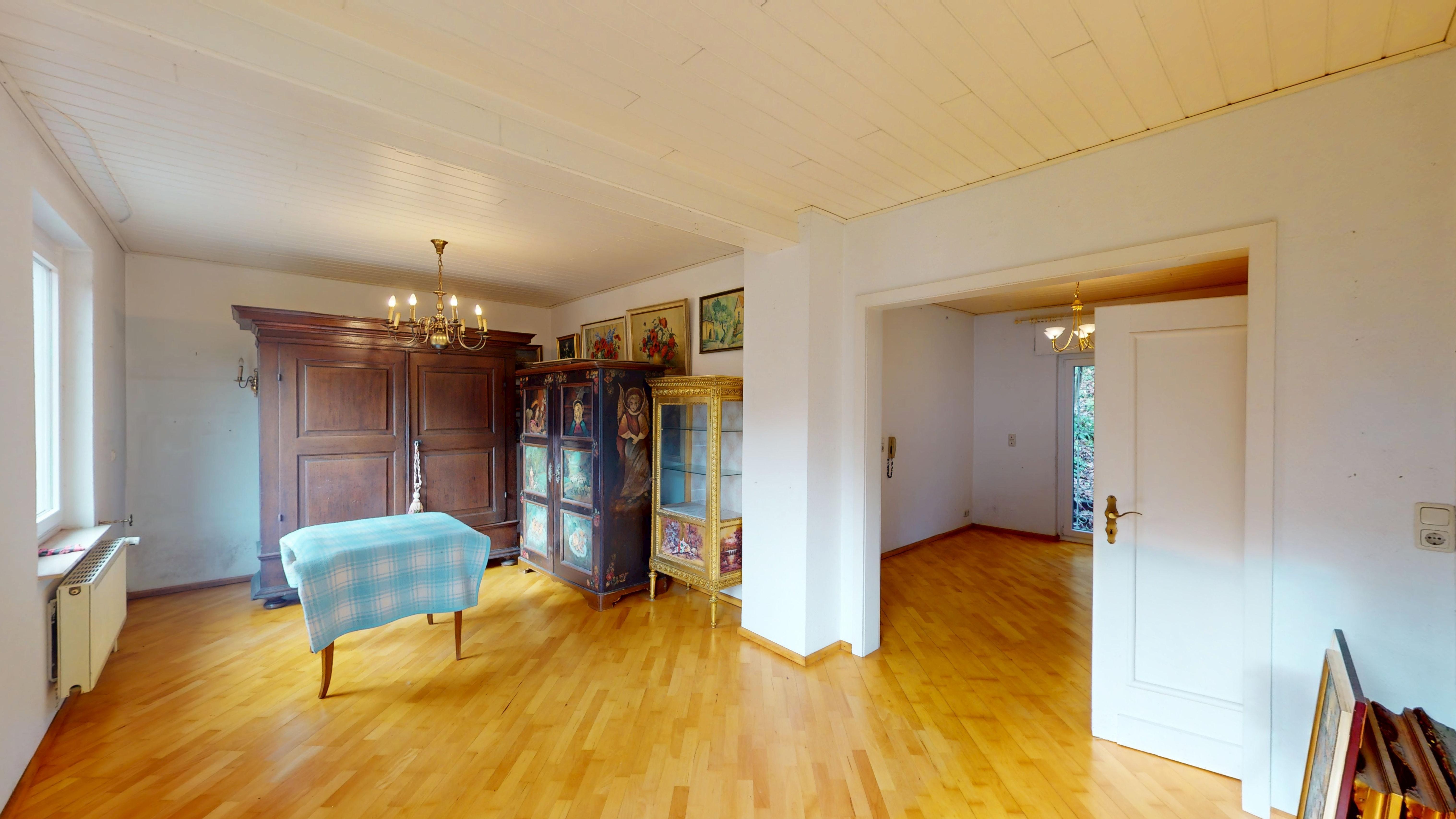 Dieses kleine Einfamilienhaus in Südhanglage wurde 1936 in solider Massivbauweise errichtet und steht auf einem Grundstück von etwa 876 m², das Raum für Erholung und individuelle Gestaltung bietet. Die rund 102 m² Wohnfläche vermitteln ein behagliches Wohngefühl, ergänzt durch etwa 60 m² Nutzfläche im Keller, der dank eines separaten Zugangs vielfältige Nutzungsmöglichkeiten eröffnet. Modernisierungen wie die Gastherme von 2017 mit Warmwasseraufbereitung sowie die zweifach verglasten Kunststofffenster aus dem Jahr 2013 steigern die Energieeffizienz des Hauses. Im Zuge dieser Maßnahmen wurden außerdem Teile der Frisch- und Abwasserleitungen sowie einzelne Stromleitungen erneuert. Eine Drainage ist vorhanden, dennoch kann die typische Bodenfeuchte der Hanglage zu erhöhter Feuchtigkeit im Haus führen.