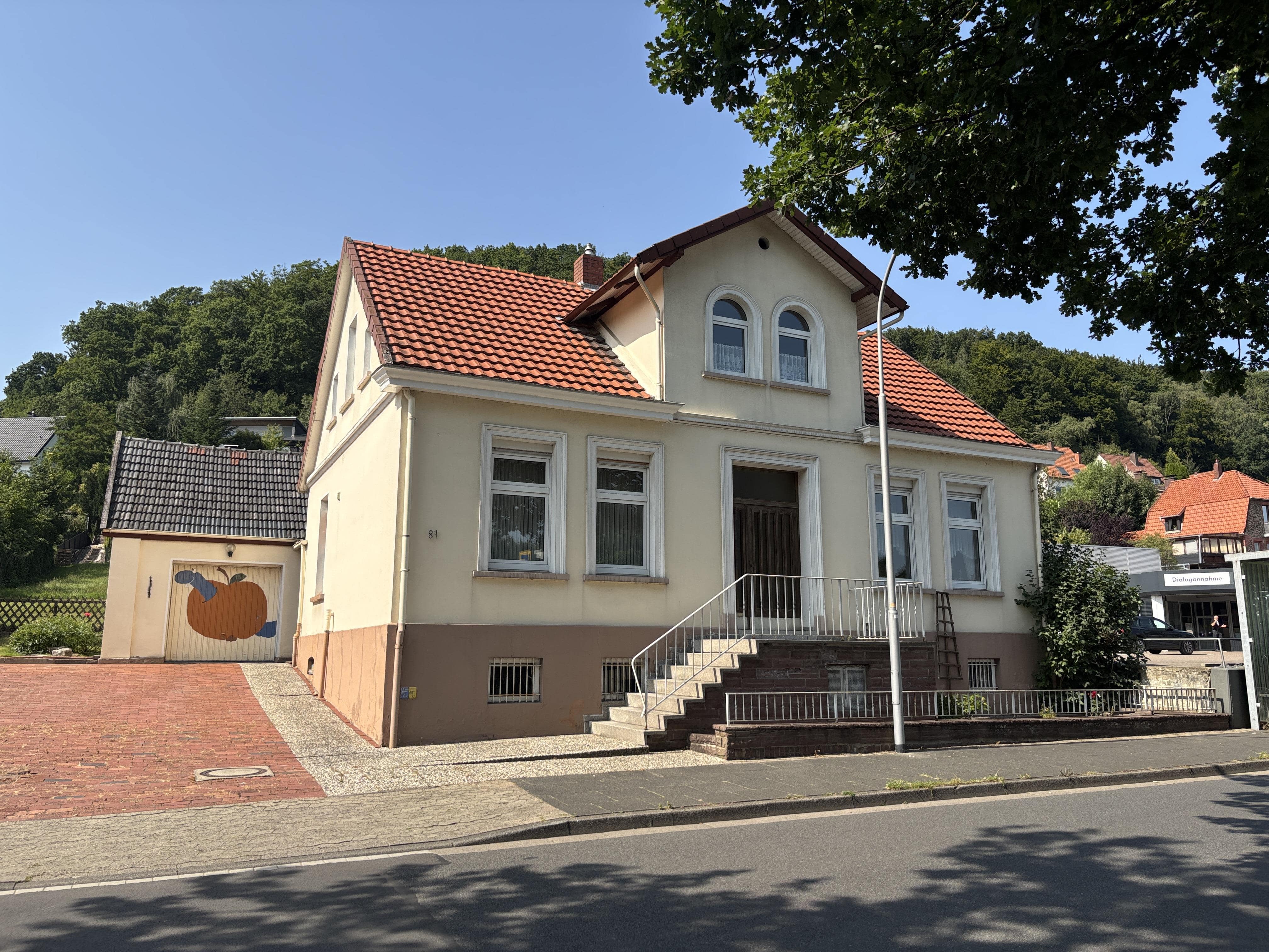 Das ältere und charmante Einfamilienhaus in Vlotho bietet Ihnen und Ihrer Familie die perfekte Gelegenheit, ein eigenes Zuhause zu finden. Es ist zu beachten, dass das Haus noch Einiges an Renovierungsarbeiten benötigt, um es Ihren persönlichen Vorstellungen anzupassen. Es verfügt über 5 Zimmer, Küche, Abstellraum, Garderobe und ein behindertengerechtes Bad mit Dusche, das erst im Jahr 2020 erneuert wurde. Zusätzlich finden Sie einen praktischen Abstellraum und einen Keller, der für Lagerzwecke oder als Arbeitsraum genutzt werden kann. Außerdem ist im Keller noch eine Dusche vorhanden. Außerdem gibt es noch einen ehemaligen Stallanbau, in dem weitere Abstellmöglichkeiten vorhanden sind, u. a. eine Werkstatt und ein Party-Raum. Eine Garage gehört ebenso zur Ausstattung. Es gibt keine gesicherte Aussage, ob die Fläche im Obergeschoss als Wohnfläche genehmigt ist. Lt. Aussage des Architekten ist sie nachgenehmigungsfähig. Ein besonderes Highlight ist der eigene Garten, der Ihnen und Ihrer Familie viel Freiraum für Spiel, Erholung und Entspannung bietet. Eine Terrasse lädt zum Verweilen und Genießen der frischen Luft ein. Dieses Einfamilienhaus kann sofort bezogen werden. Es bietet viel Potenzial für Eigeninitiative und kreative Gestaltung, um es zu Ihrem Traumhaus zu machen.