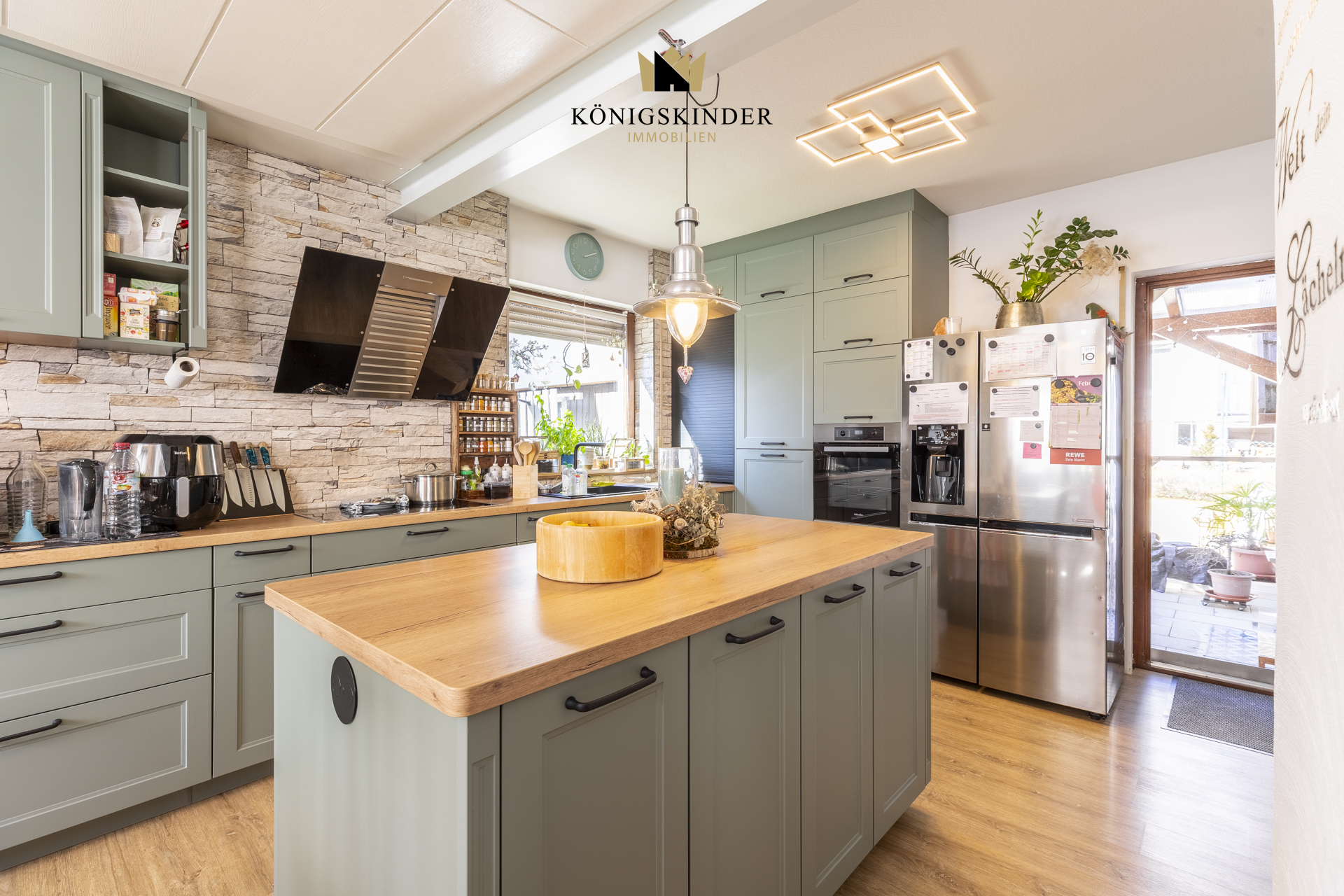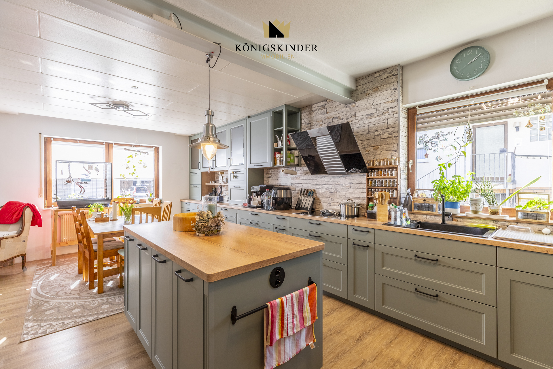 Erdgeschoss: •Flur mit Vinylboden und Treppenaufgang ins Obergeschoss •Zugang zum Keller •Helles Wohnzimmer mit großen Fenstern •Offener Übergang zum Essbereich •Moderne Einbauküche mit Kücheninsel (2021) •Direkter Zugang zur Terrasse •Schlafzimmer •Badezimmer mit vorhandenen Anschlüssen (noch nicht modernisiert) •Gäste-WC