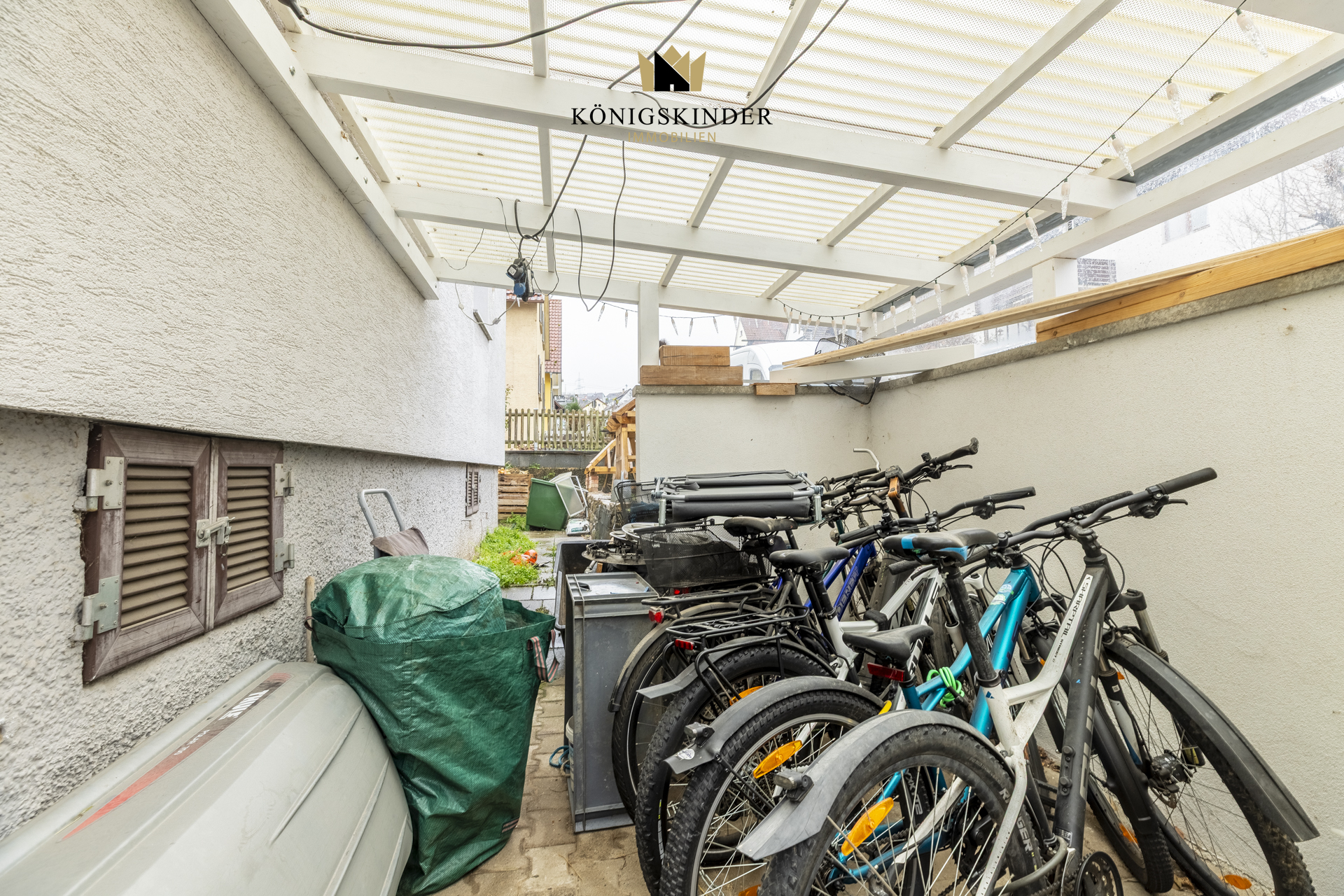Der Außenbereich besticht durch eine großzügige Terrasse und einen gepflegten Garten. Zwei Stellplätze runden dieses attraktive Angebot ab.