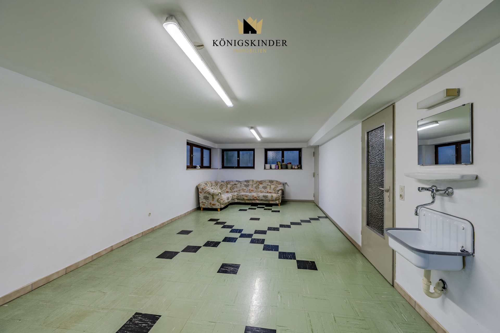 Das Untergeschoss mit einem großen Gesellschaftszimmer (ca. 32m²) und Zugang über eine Außentreppe und ein Abstellraum, eine Waschküche, der Heizraum runden das Angebot ab.