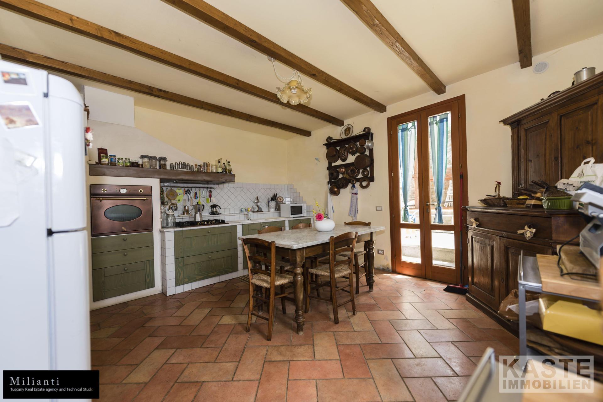 Das Haus wurde vollständig nach toskanischer Tradition restauriert, wobei im Erdgeschoss Cotto-Fliesenböden und im Obergeschoss im Schlafbereich Holzböden verwendet wurden.