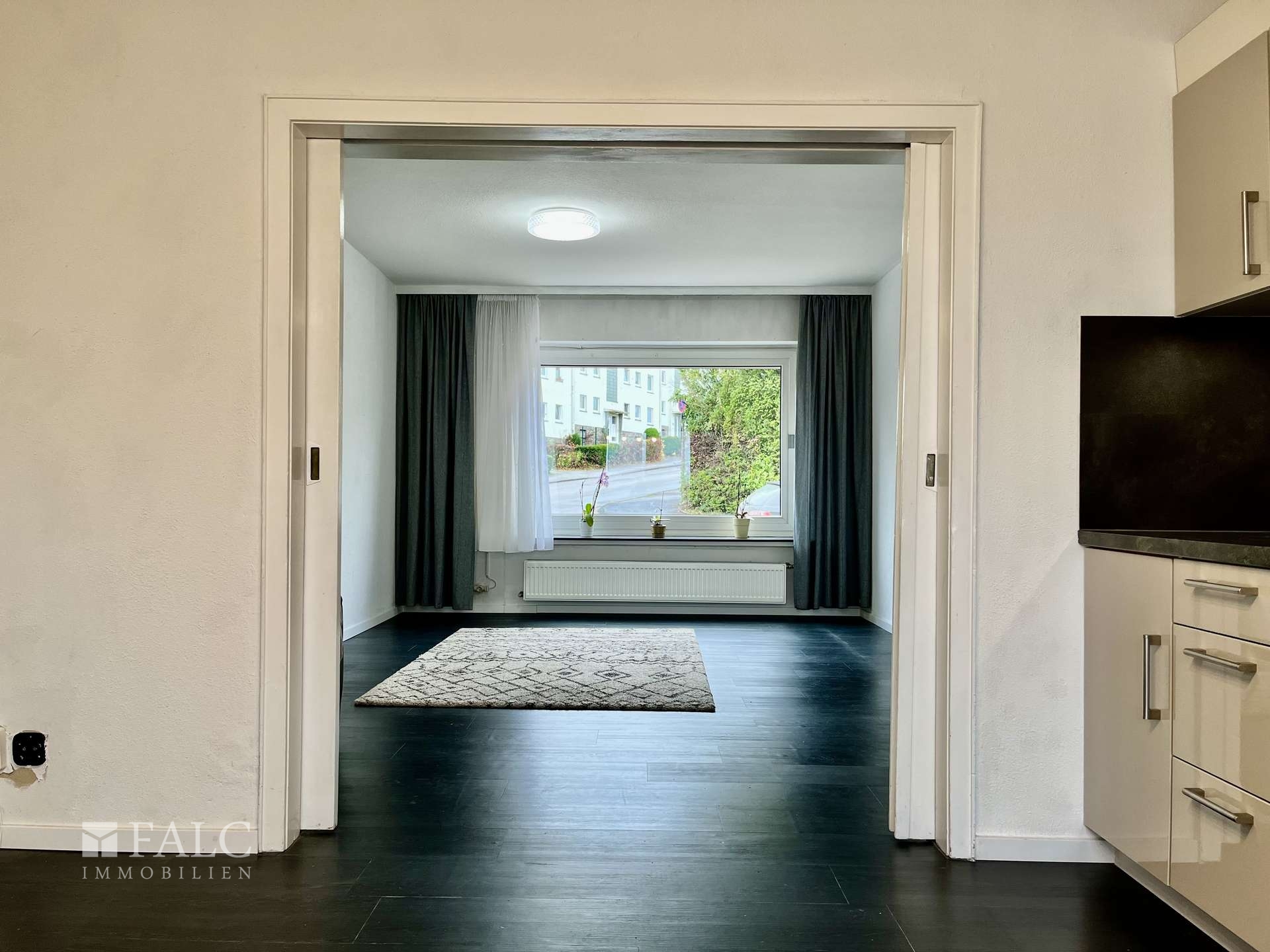Dieses massiv im Jahr 1962 erbaute Reihenhaus überzeugt mit einer soliden Bauweise, einer überraschend großzügigen Raumaufteilung und zahlreichen Modernisierungen. Auf rund 96 m² Wohnfläche verteilt auf fünf Zimmer bietet das Haus vielseitige Nutzungsmöglichkeiten und eignet sich ideal für Familien oder Paare, die Wert auf zusätzliche Räume für Gäste, Arbeit oder Hobbys legen. Im Erdgeschoss befindet sich direkt neben der Eingangstür ein praktisches Gäste-WC, gefolgt vom Flur, der in ein helles Gästezimmer sowie in das gemütliche Wohnzimmer führt. Von hier gelangt man durch eine beidseitig versenkbare Schiebetür in die Küche, die nicht nur funktional gestaltet ist, sondern auch einen direkten Zugang zum Balkon bietet. Über eine Wendeltreppe gelangt man von dort in den Garten, der das Platzangebot im Freien ideal ergänzt.