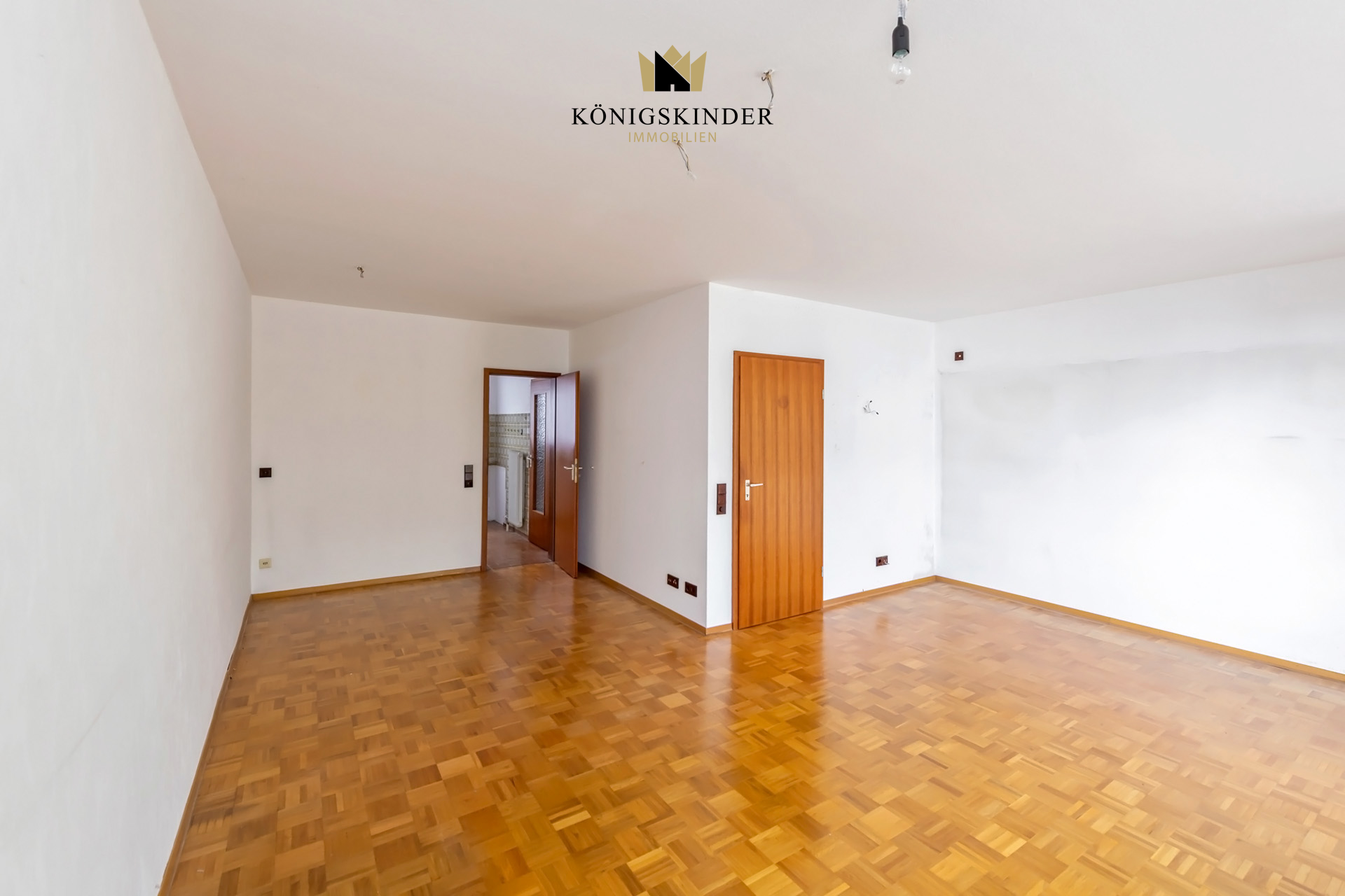 Im Wohn- Essbereich liegt ein Echtholzparkettboden.