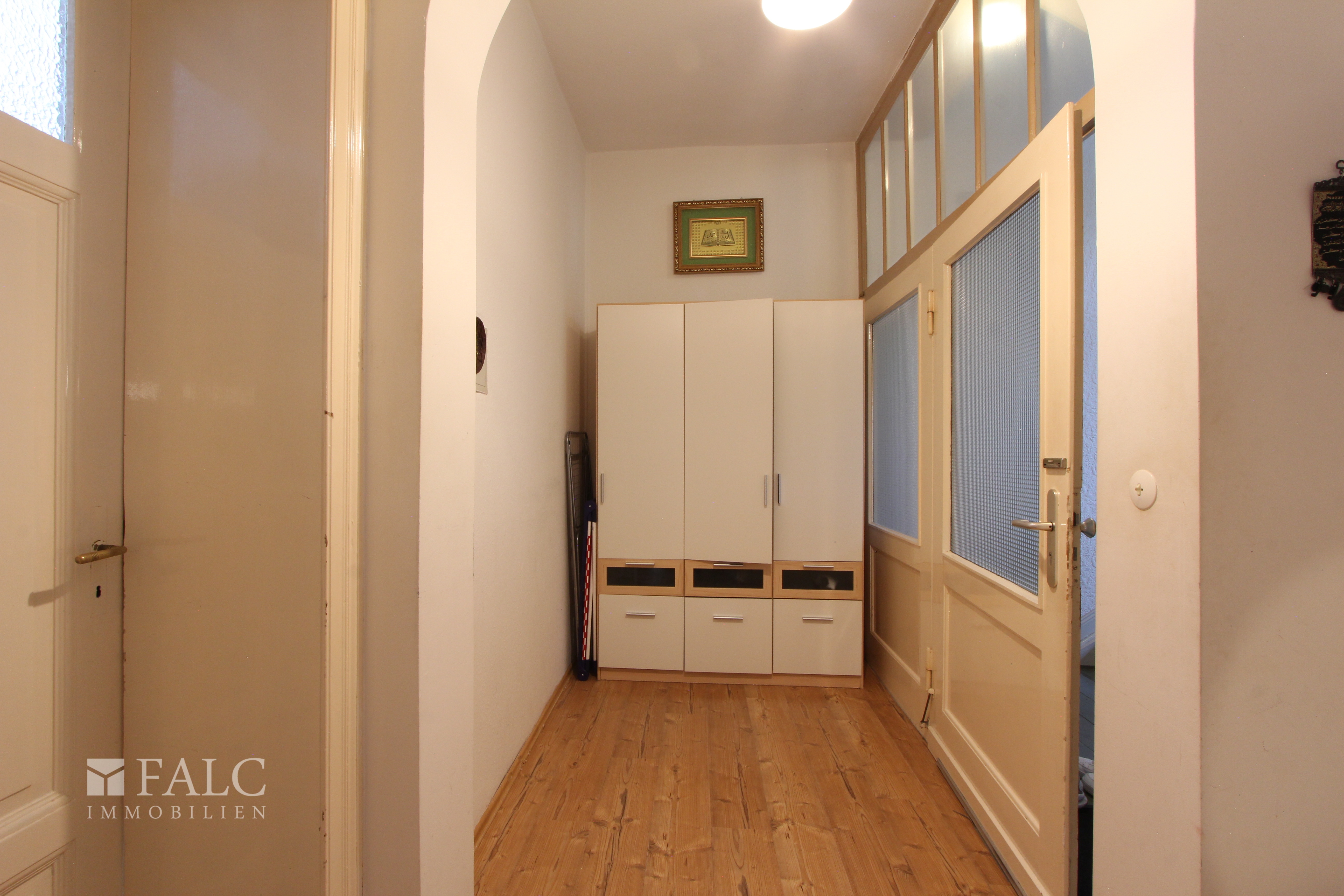 Die Immobilie befindet sich in einem gepflegten Zustand und wurde regelmäßig instand gehalten. Insgesamt stehen rund 300 m² Wohnfläche zur Verfügung, verteilt auf vier Wohneinheiten mit klassischen Grundrissen: jeweils drei Zimmer, Küche, Diele und Bad. Die Bäder wurden im Laufe der Jahre modernisiert, sind zeitgemäß ausgestattet und weiß gefliest. Alle Wohnungen verfügen über isolierverglaste Kunststofffenster. Die Beheizung erfolgt über eine zentrale Fernwärmeversorgung mit eigenen Zählern – ebenso sind Strom- und Wasserzähler für jede Einheit separat vorhanden. Jeder Wohnung ist ein eigener Kellerraum zugeordnet. Im gemeinschaftlich nutzbaren Innenhof stehen praktische Abstellmöglichkeiten, z. B. für Fahrräder, zur Verfügung.