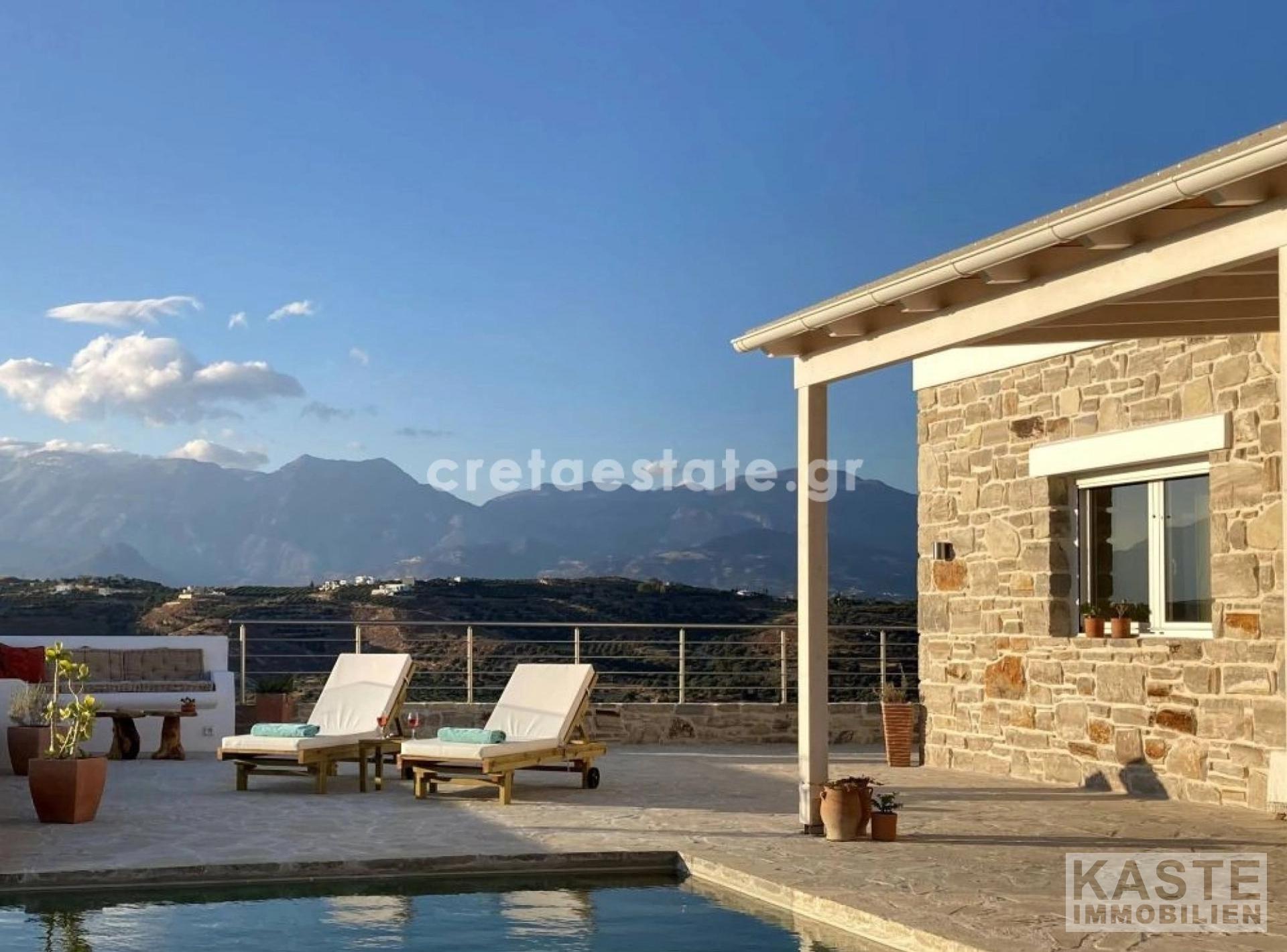 Dieses neu erbaute Steinhaus in Pitsidia besticht durch seine gelungene Kombination aus traditionellem Stein und Holz, die ein besonders einladendes und gemütliches Ambiente schafft. Mit großzügigen 170 m² Wohnfläche auf einem großzügigen Grundstück von 1160 m² bietet diese Immobilie viel Raum und gleichzeitig die Nähe zur Natur mit einem herrlichen Ausblick auf das Meer, die Psiloritis-Bergkette, das malerische Dorf Pitsidia und die fruchtbare Messara-Ebene.