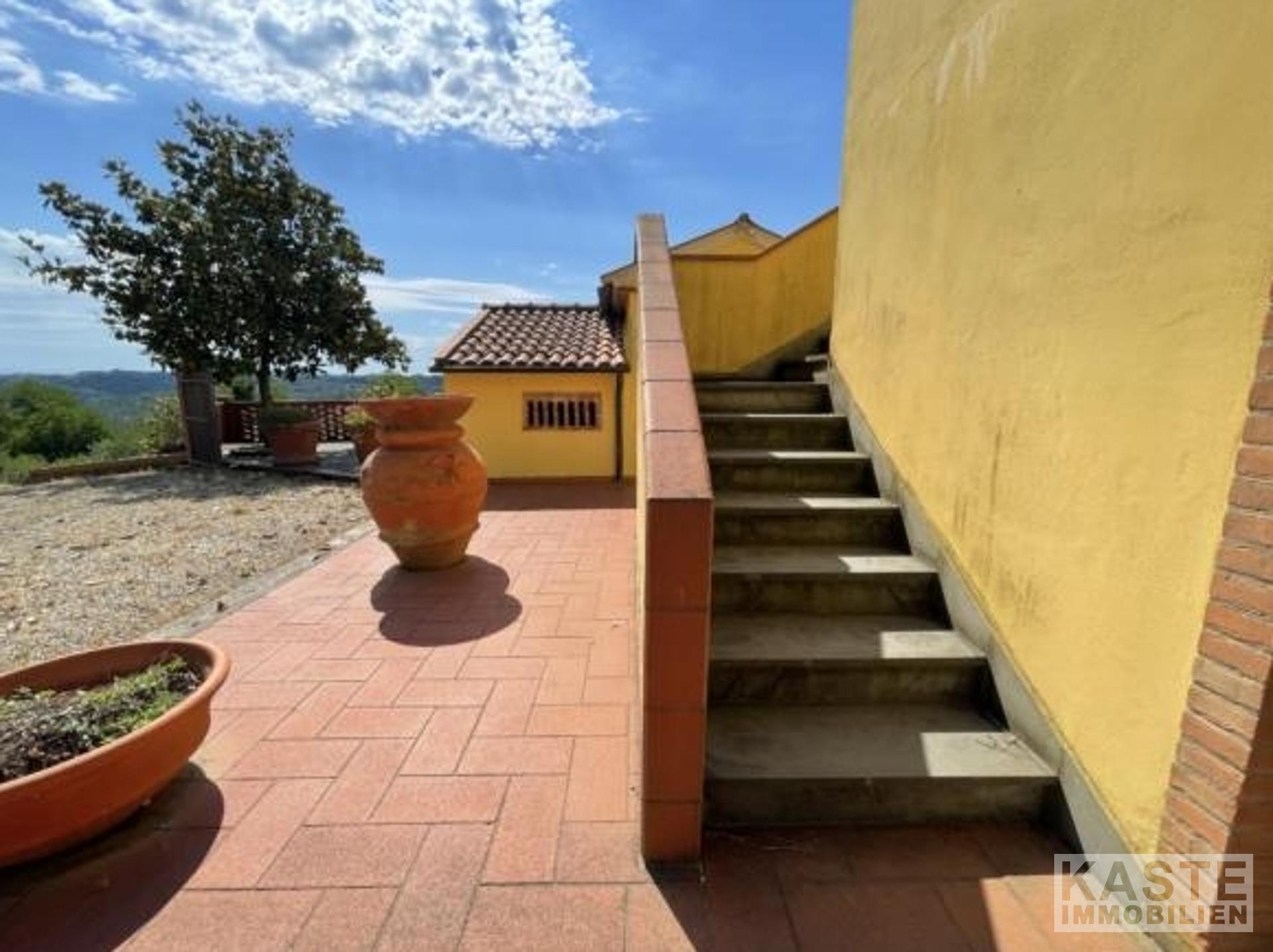 In erhöhter, dominanter Lage nahe dem historischen Ortskern eines malerischen Dorfes in der Gemeinde Palaia liegt dieses einzigartige Weingut mit Agriturismo. Die großzügige Liegenschaft erstreckt sich über ca. 700 m² und umfasst ein wunderschönes Hauptgebäude, eine Scheune sowie mehrere Nebengebäude. Das Anwesen