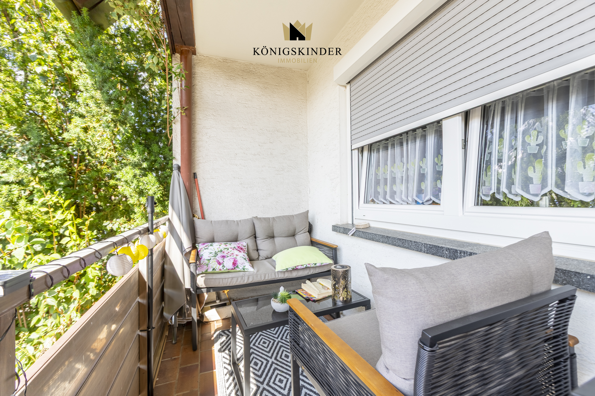 Im Obergeschoss befindet sich die zweite Wohneinheit mit rund 80,5 m², ebenfalls mit drei Zimmern, Küche und Bad. Der Balkon mit Blick ins Grüne lädt zum Entspannen ein und rundet das gelungene Wohnkonzept ab.