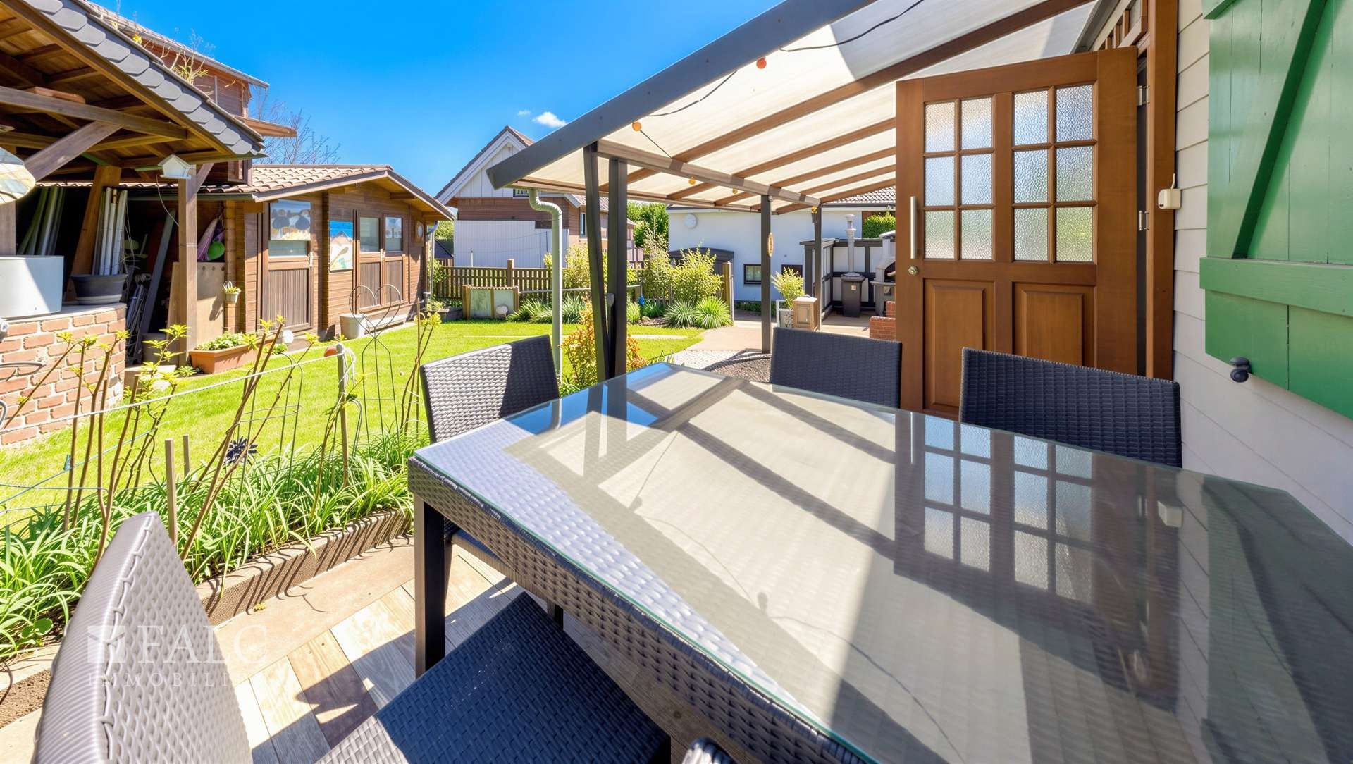 Der Außenbereich bietet einen schönen Garten mit Terrasse, der zum Verweilen und Entspannen einlädt. Ob als privater Rückzugsort, Spielfläche für Kinder oder gemütlicher Bereich für gemeinsame Stunden im Freien – hier eröffnen sich zahlreiche Möglichkeiten.