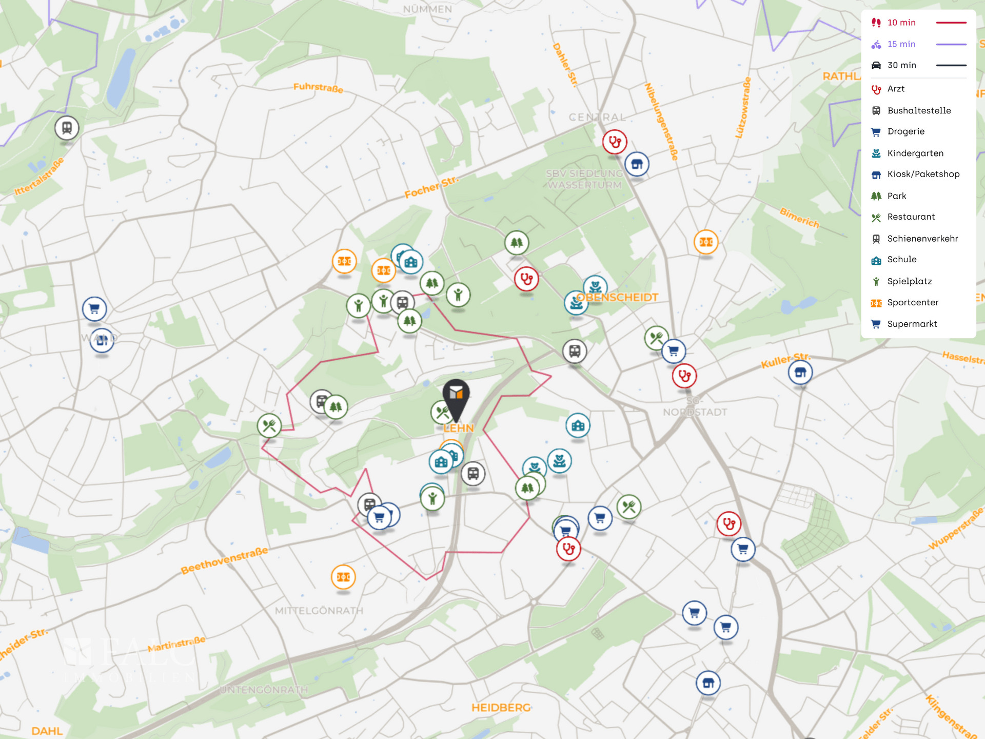 Die Anbindung an den öffentlichen Nahverkehr ist komfortabel. Bushaltestellen wie Lehner Straße, Botanischer Garten und Hecken liegen in der Nähe, der Bahnhof Solingen Grünewald ist ebenfalls gut erreichbar und verbindet die Umgebung zuverlässig mit weiteren Zielen in der Region. Für Autofahrende ist die Anbindung an das überregionale Straßennetz gut, und auch die Flughäfen Düsseldorf sowie Köln Bonn sind für Reisen und Berufspendler gut erreichbar.