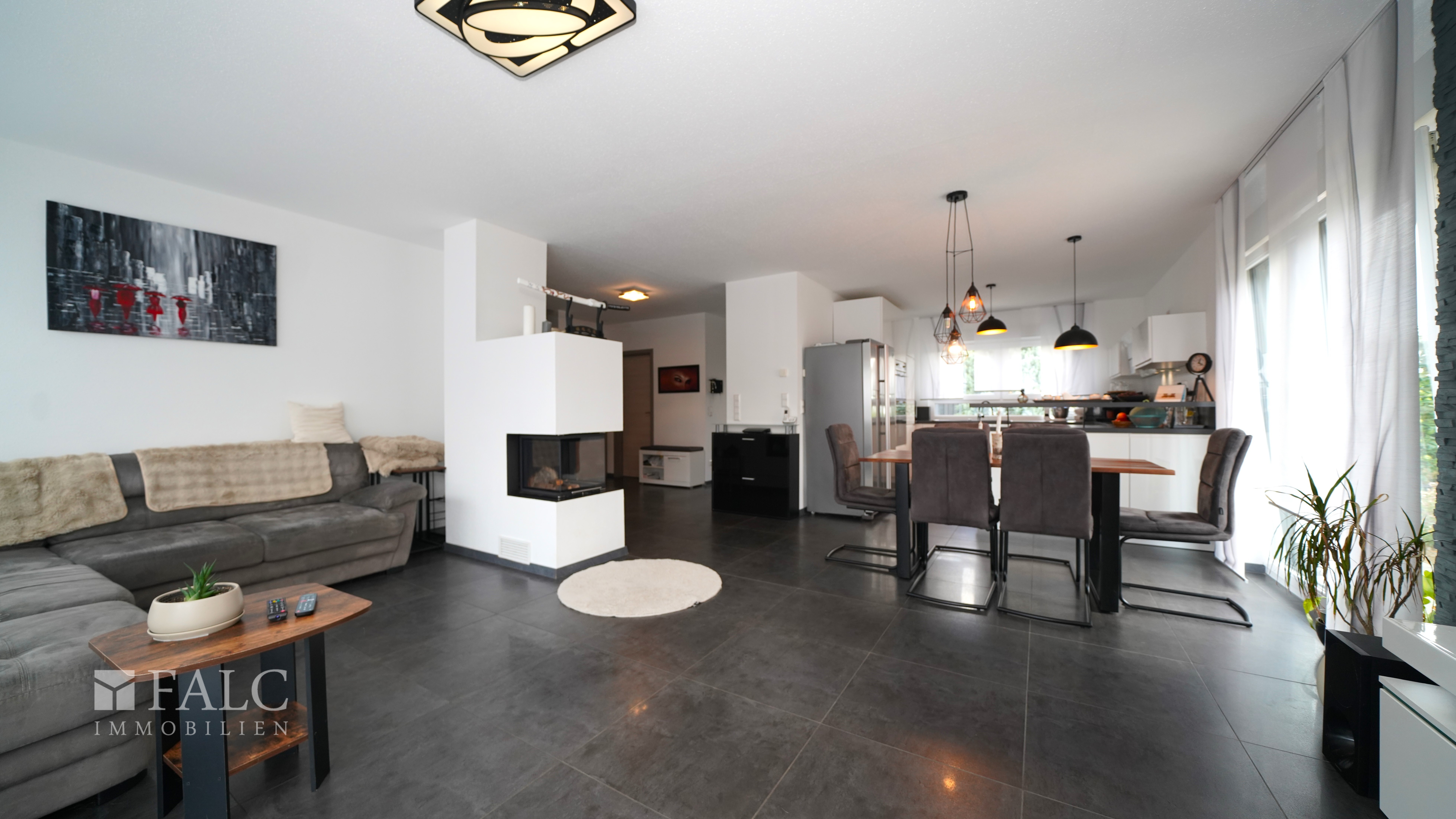 Vom Flur aus lassen Sie Ihren Blick in das großzügige Wohn- und Esszimmer schweifen. Das große, lichtdurchflutete Wohnzimmer mit Essbereich lädt zum Verweilen und Entspannen ein, der Kaminofen für kalte Tage trägt zur Wohlfühlatmosphäre bei. Zaubern Sie sich im Herzstück Ihres Zuhauses eine Ruhezone nach Lust und Laune!