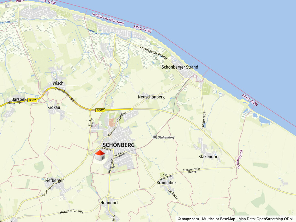 Durch die B 502 ist Schönberg hervorragend an die Landeshauptstadt Kiel angeschlossen, die in ca. zwanzig Minuten mit dem Auto zu erreichen ist.