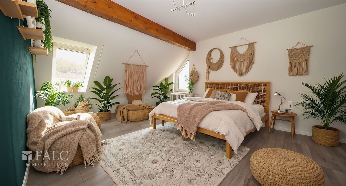 Durch den direkten Zugang zum Dachgeschoss in dieser Wohnung bietet sich die reizvolle Möglichkeit, die Decke zu öffnen – etwa für eine lichtdurchflutete Galerie oder ein zusätzliches Schlafzimmer mit besonderem Charme.