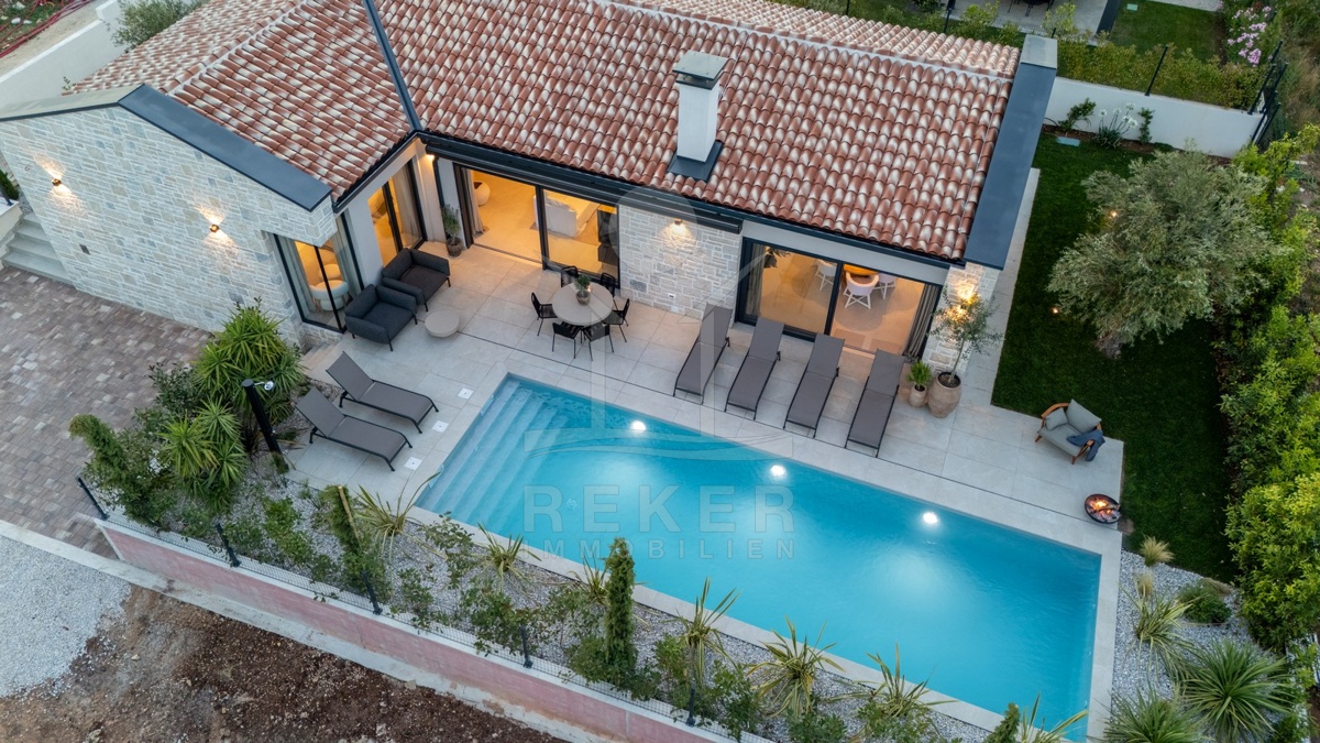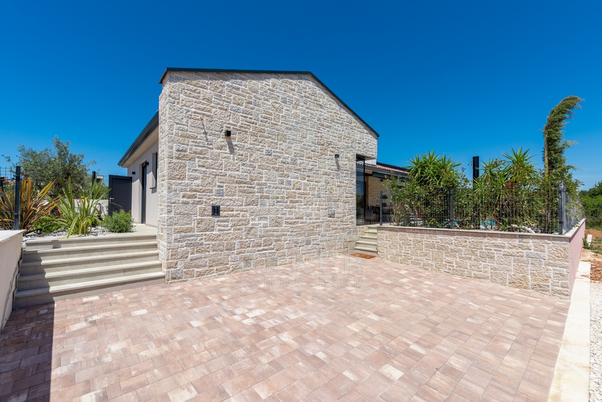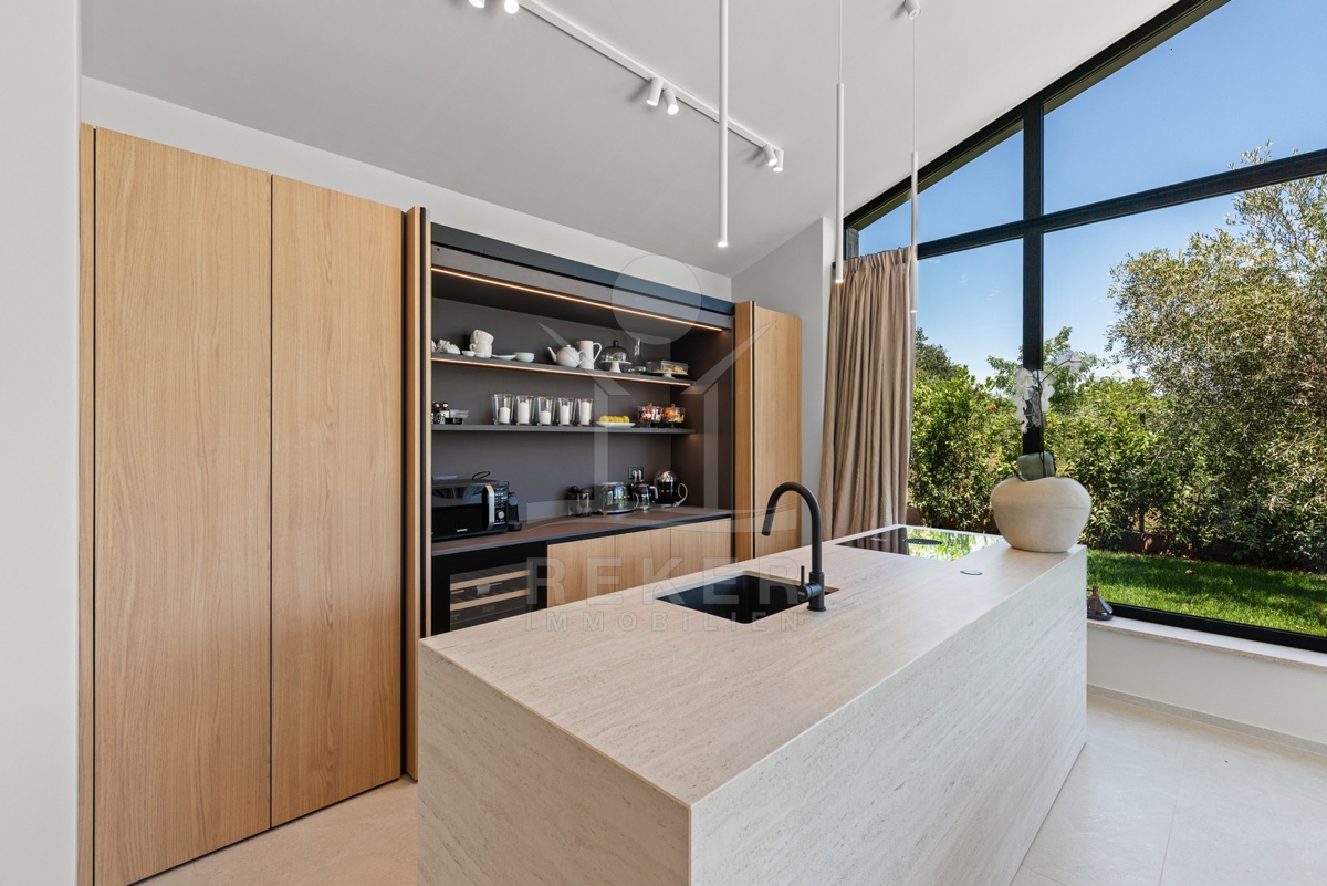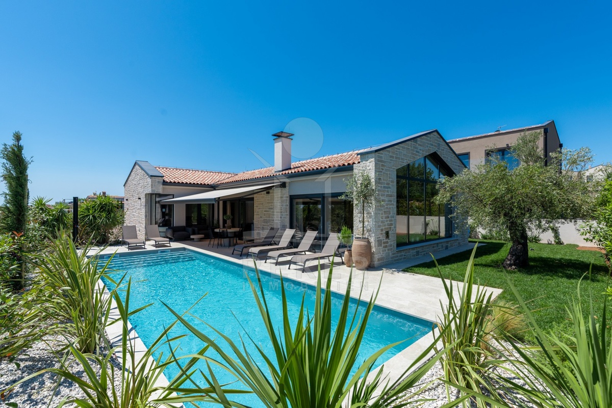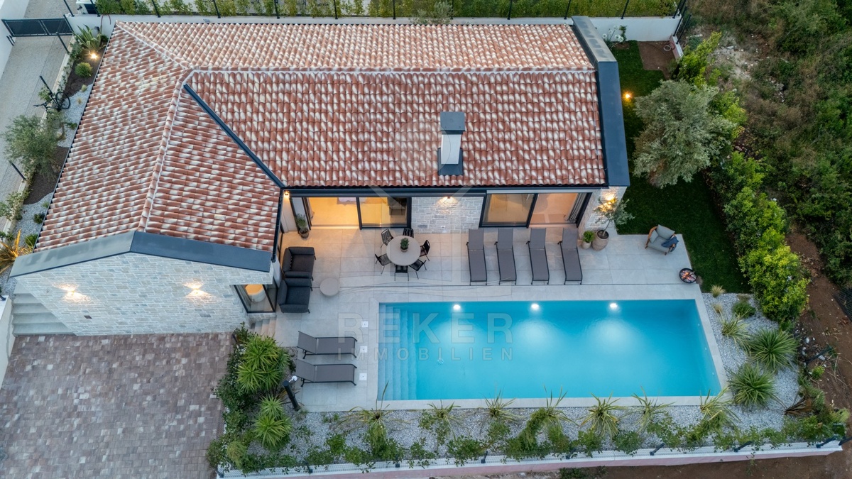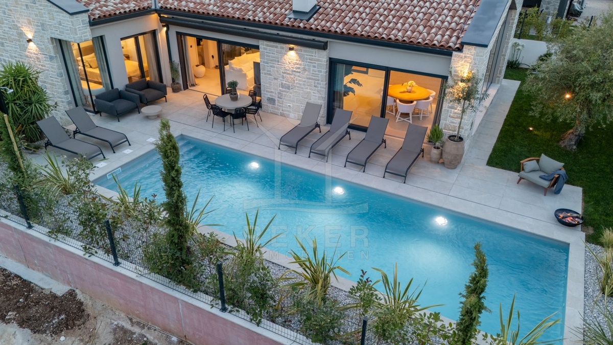 Ein Highlight für Designliebhaber: moderner Bungalow mit hochwertiger Ausstattung, Fußbodenheizung & Klimaanlage. Garten, Pool und Eleganz vereint in einer traumhaften Lage bei Poreč, nur 3 km vom Meer.