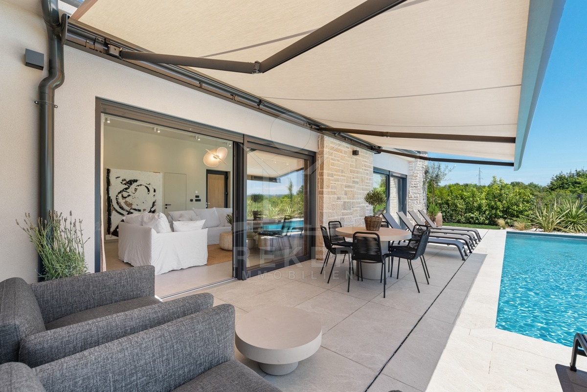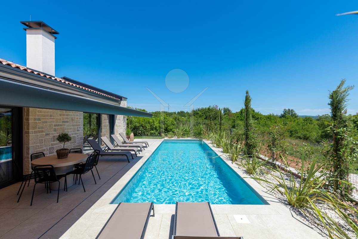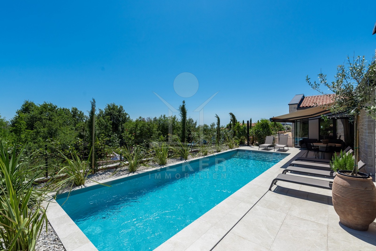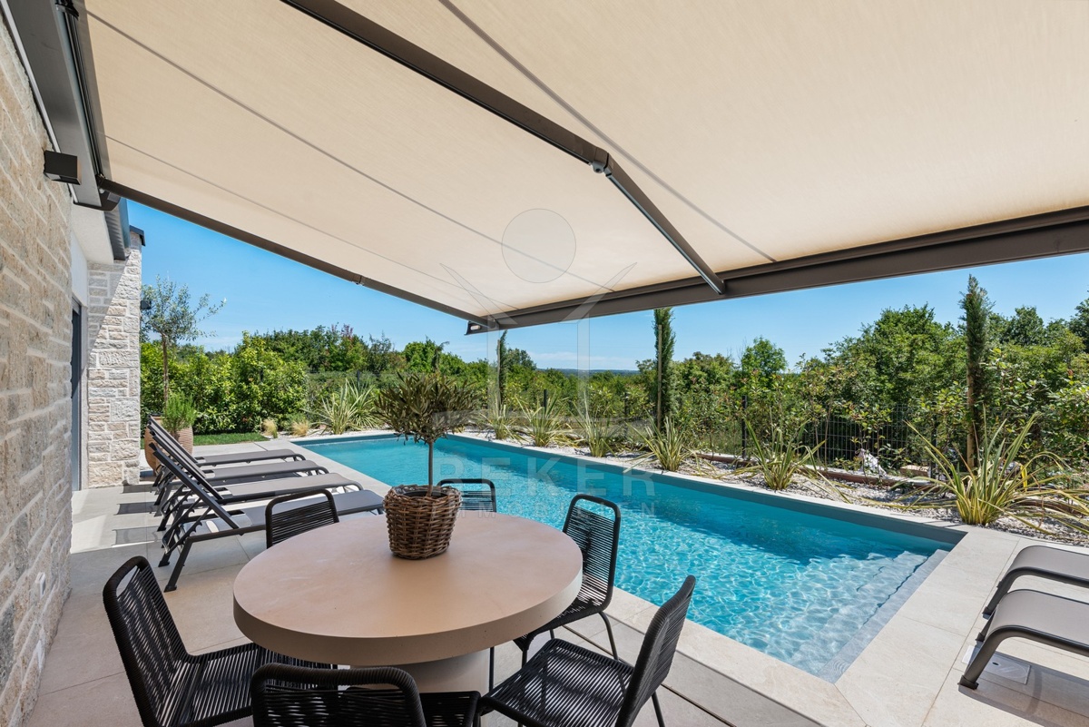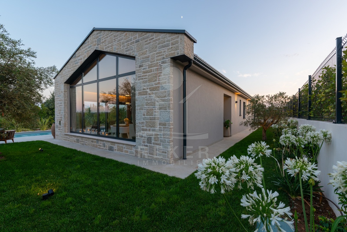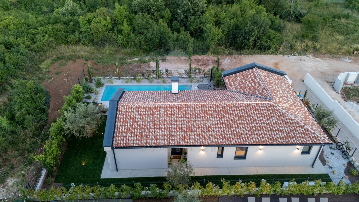 Ein Highlight für Designliebhaber: moderner Bungalow mit hochwertiger Ausstattung, Fußbodenheizung & Klimaanlage. Garten, Pool und Eleganz vereint in einer traumhaften Lage bei Poreč, nur 3 km vom Meer.