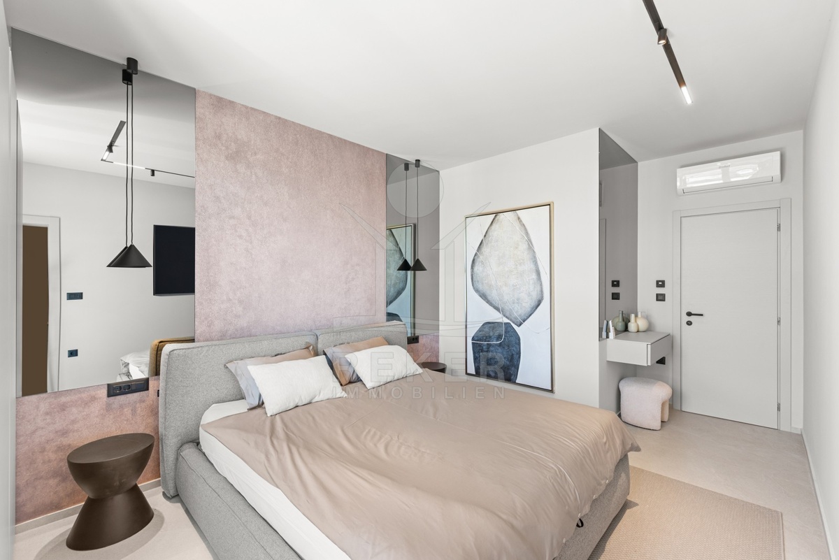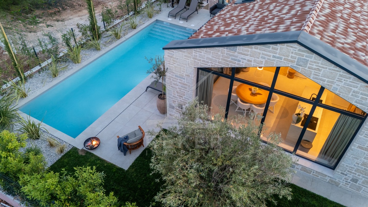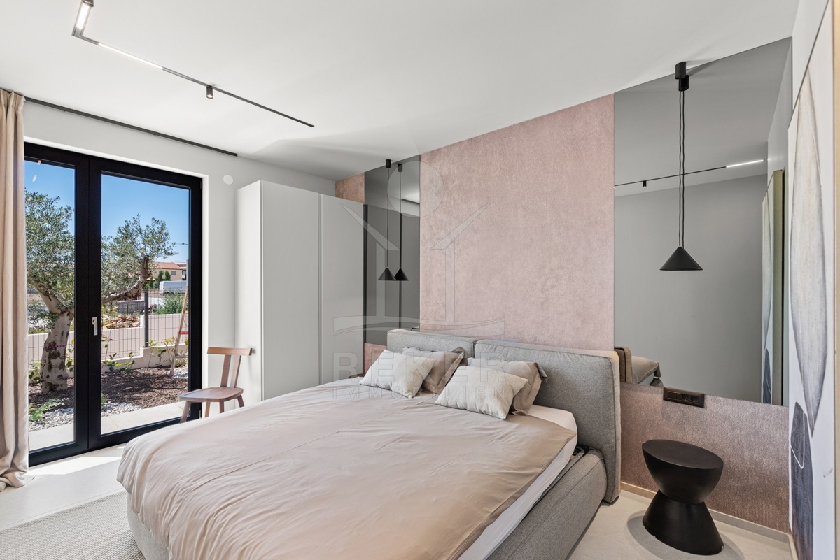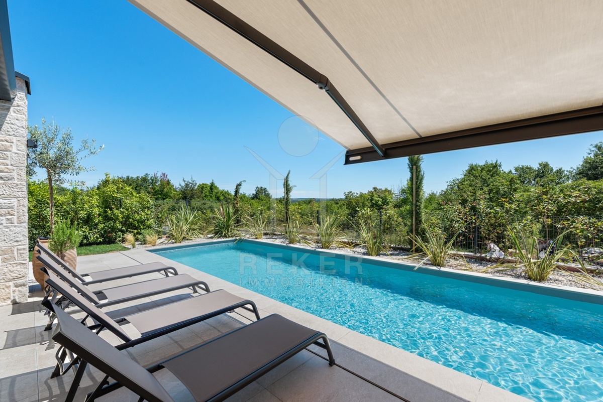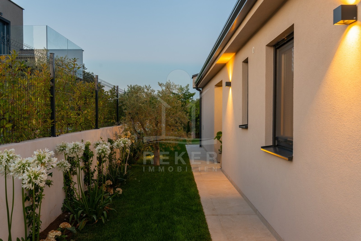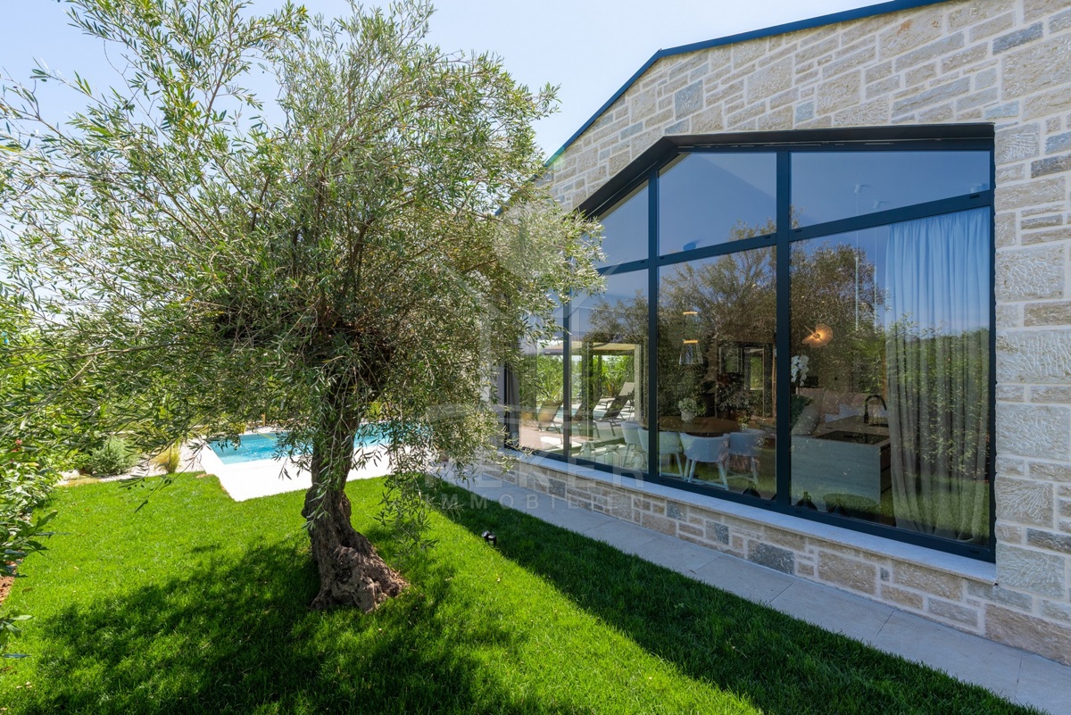 Ein Highlight für Designliebhaber: moderner Bungalow mit hochwertiger Ausstattung, Fußbodenheizung & Klimaanlage. Garten, Pool und Eleganz vereint in einer traumhaften Lage bei Poreč, nur 3 km vom Meer.