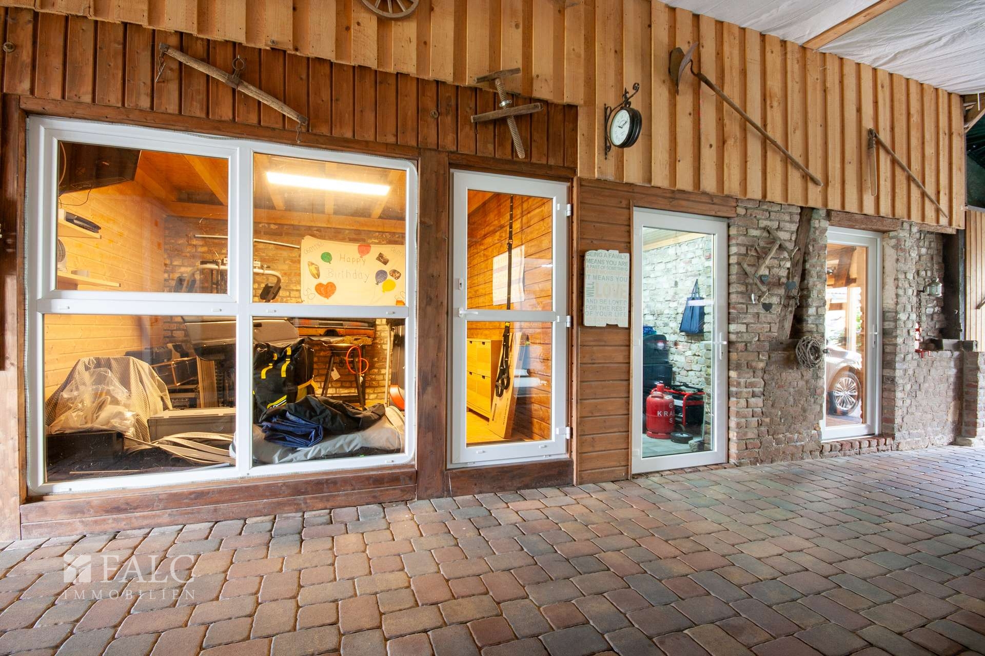 Zusätzlich bietet das Anwesen reichlich Nebengebäude mit viel zusätzlicher Nutzfläche, unter anderem einer Werkstatt, einem Fitnessraum und einer Außenküche. Diese vielseitigen Räume eröffnen zahlreiche Nutzungsmöglichkeiten.