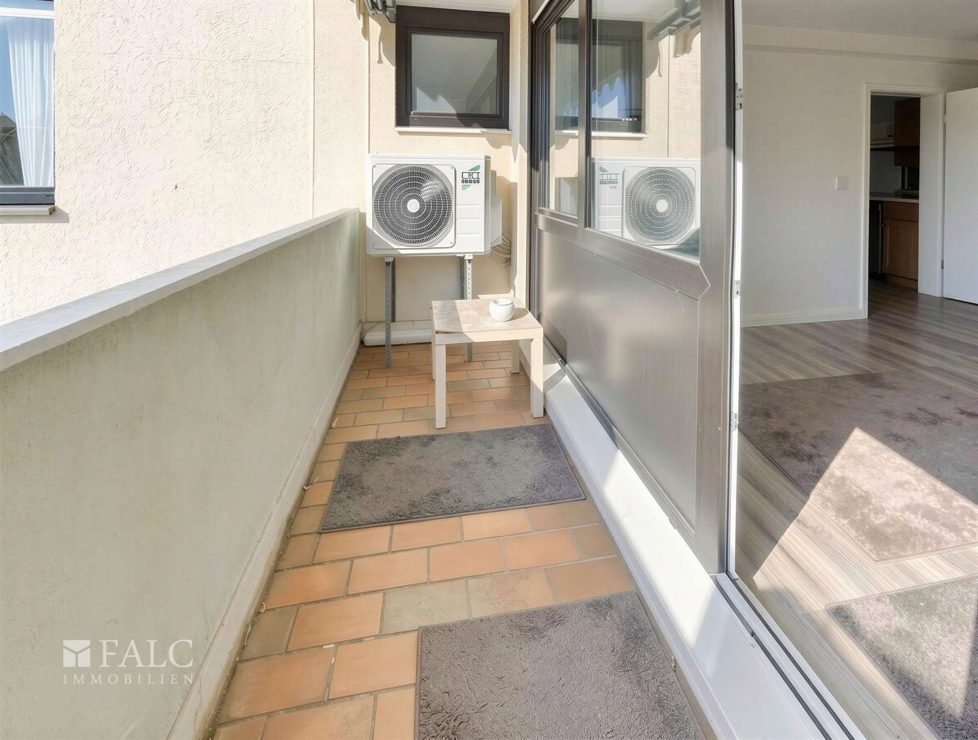 Für ein stets angenehmes Raumklima sorgen zwei leistungsstarke Klimaanlagen, die auch an heißen Sommertagen für wohltuende Frische sorgen. Auf den beiden sonnigen Balkonen erhöhen elektrische Markisen den Wohnkomfort zusätzlich – sie spenden auf Knopfdruck angenehmen Schatten und erweitern den Wohnbereich ins Freie.