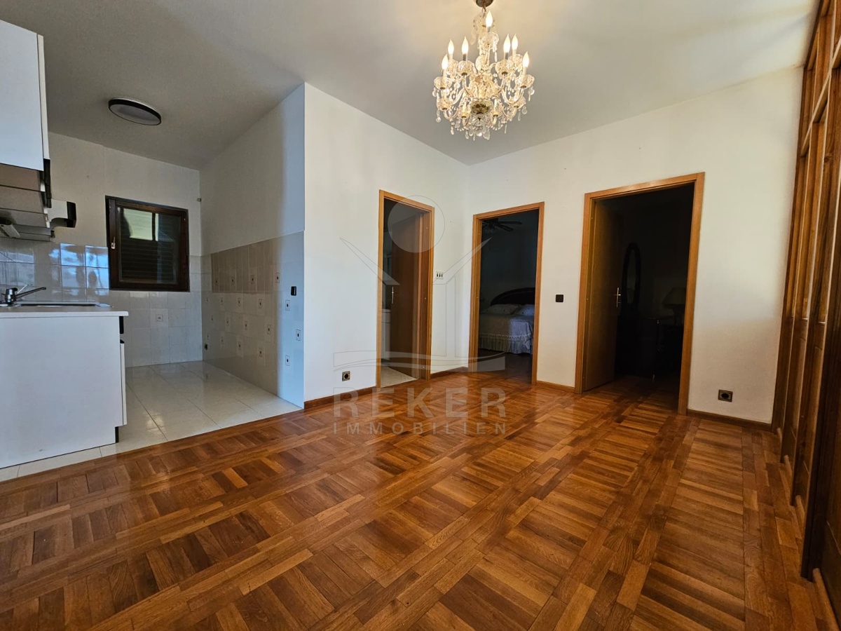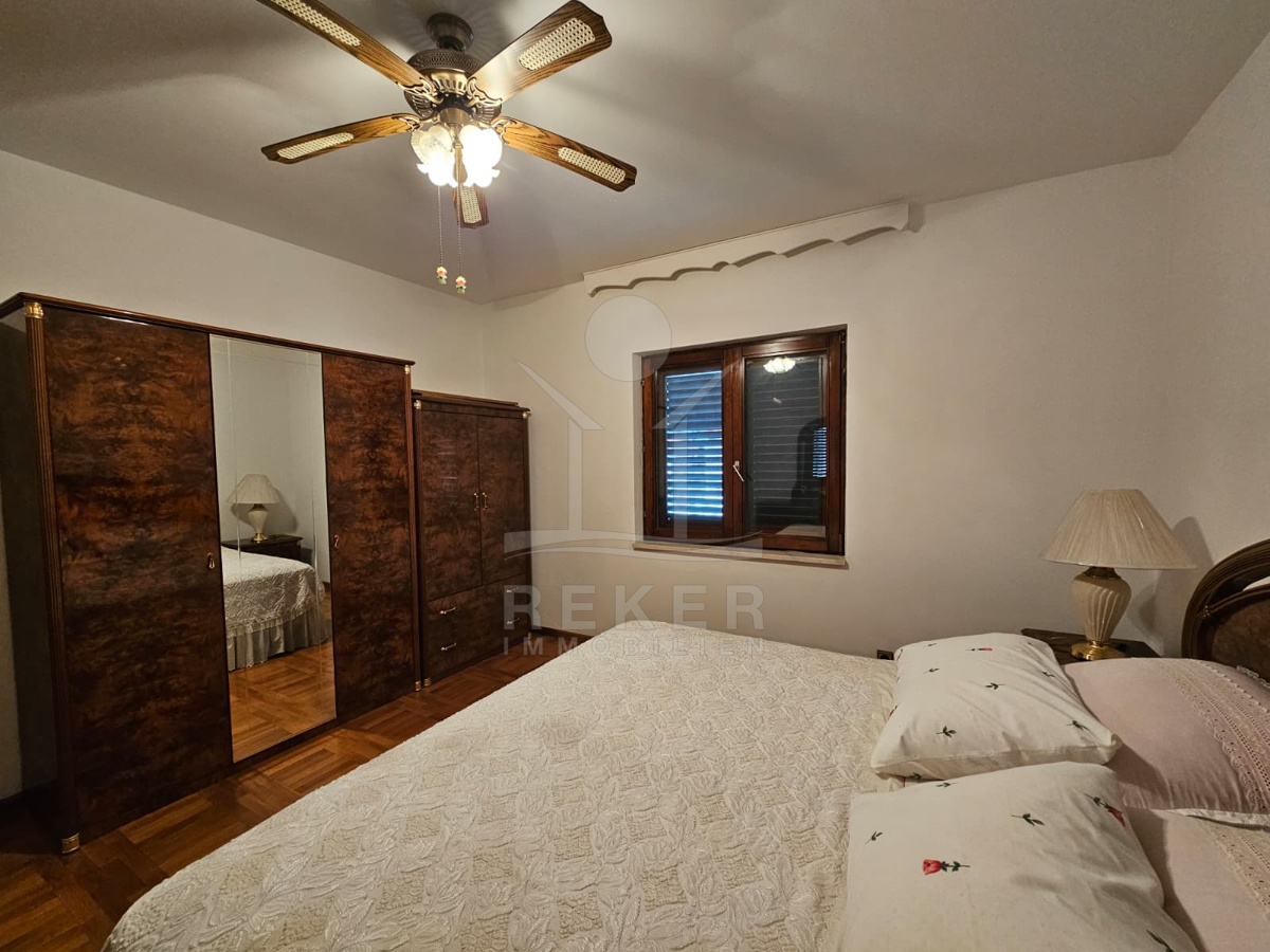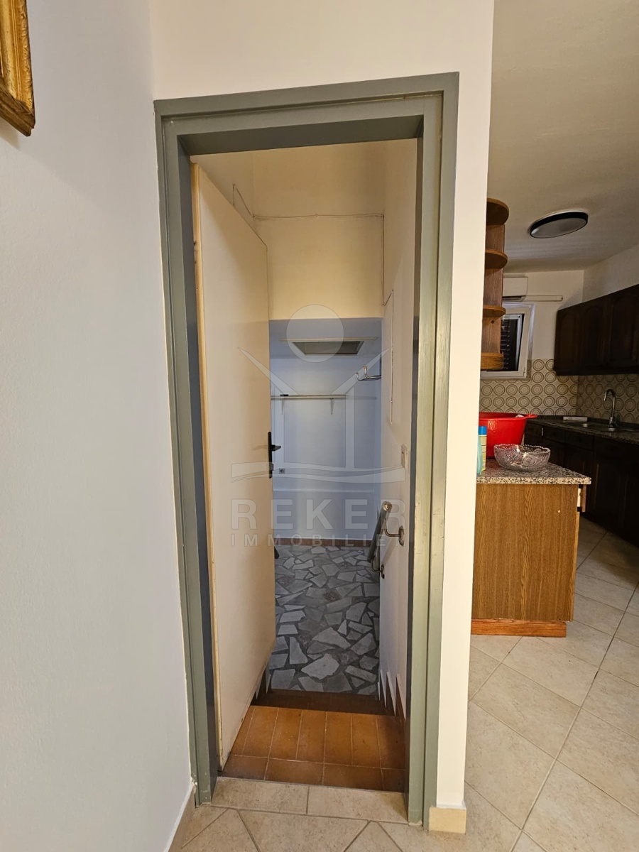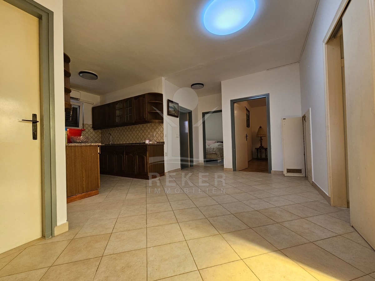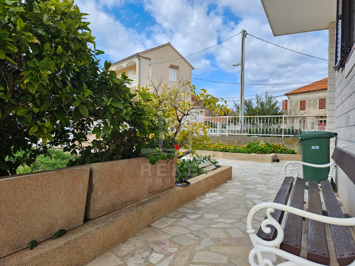 Nur 120 Meter vom Meer entfernt steht dieses freistehende Haus in ruhiger Lage nahe Šibenik. Es befindet sich im Zentrum einer gepflegten Siedlung. Den angelegten Strand erreichen Sie nach rund 250 Metern. Das Grundstück umfasst 400 m² und bietet angenehme Proportionen. Ihr Fahrzeug parken Sie im Hof oder in der etwa 14 m² großen Garage.