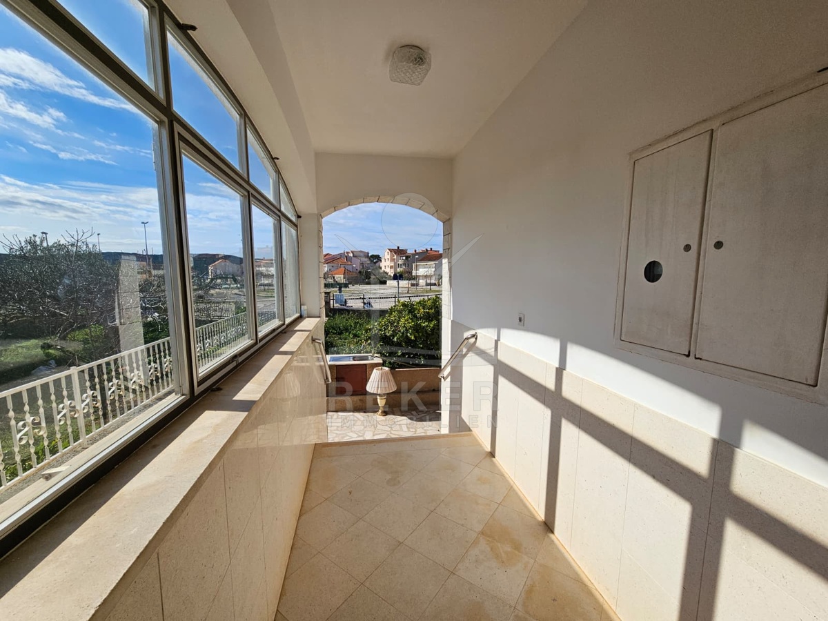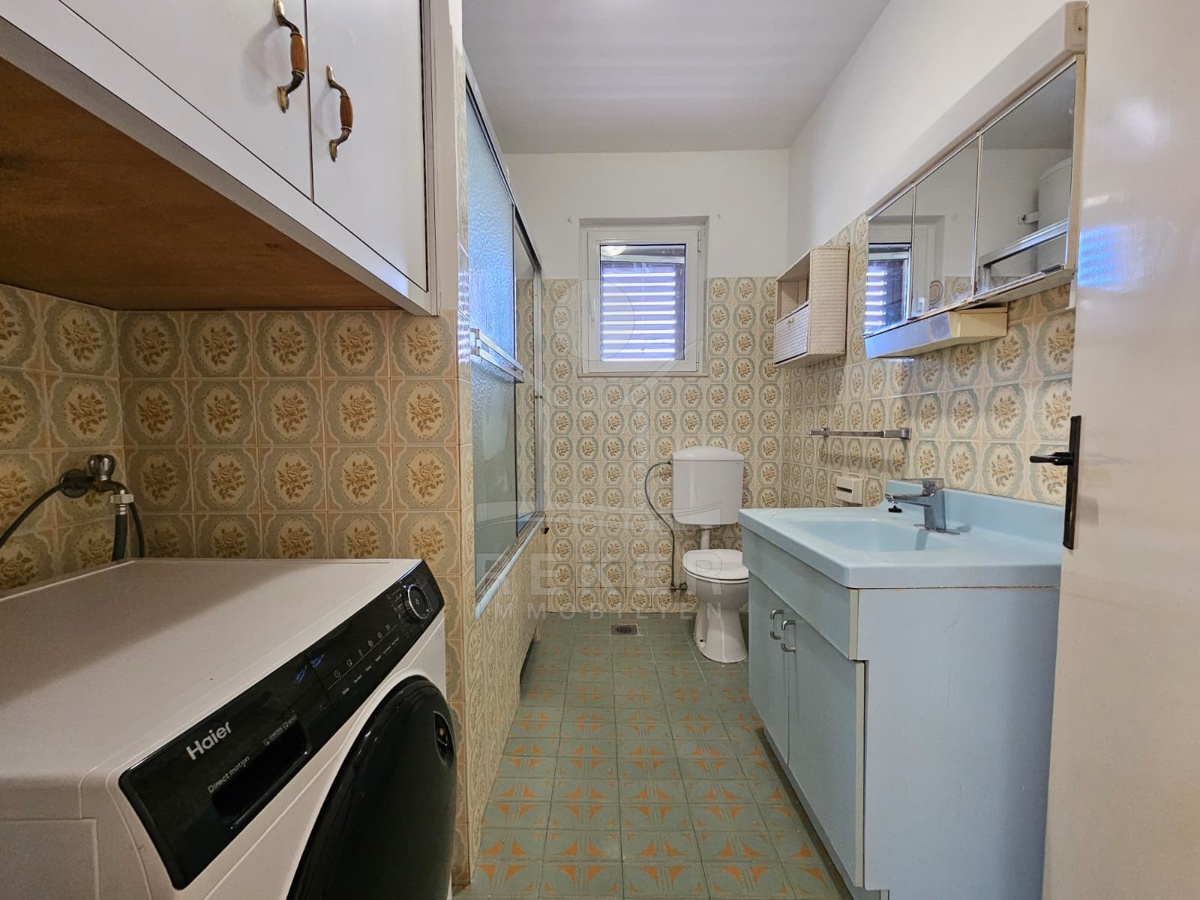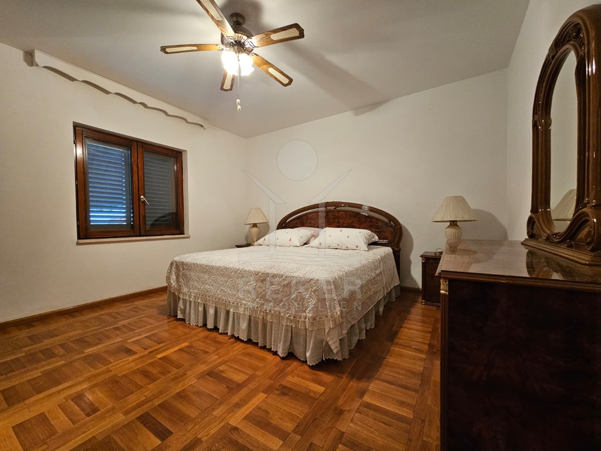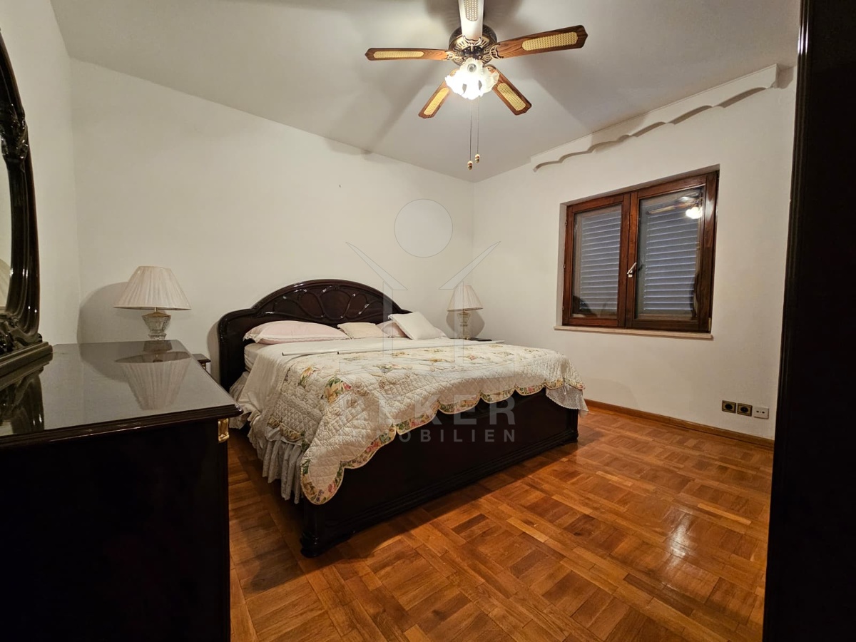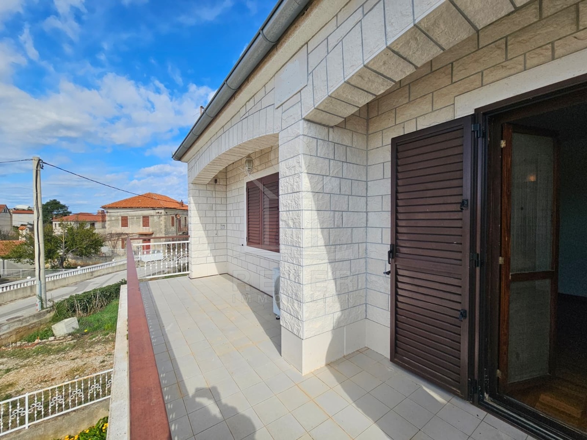 Nur 120 Meter vom Meer entfernt steht dieses freistehende Haus in ruhiger Lage nahe Šibenik. Es befindet sich im Zentrum einer gepflegten Siedlung. Den angelegten Strand erreichen Sie nach rund 250 Metern. Das Grundstück umfasst 400 m² und bietet angenehme Proportionen. Ihr Fahrzeug parken Sie im Hof oder in der etwa 14 m² großen Garage.