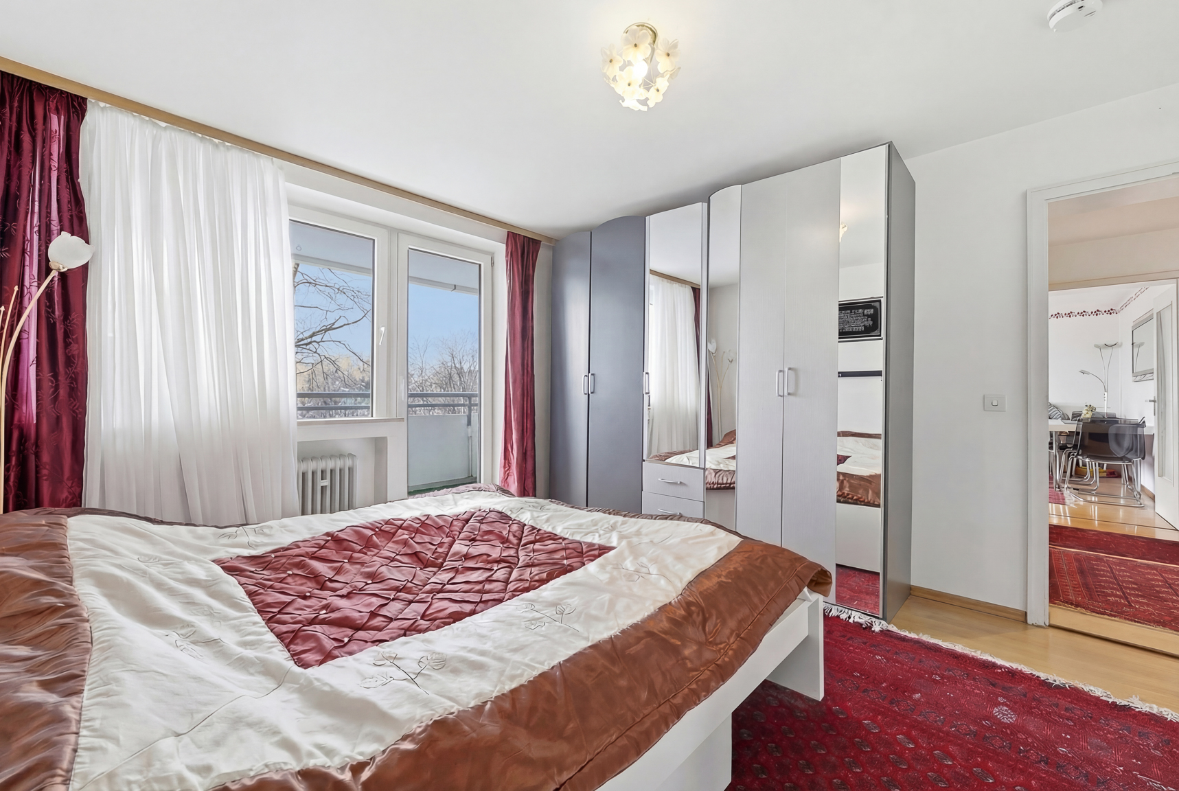 Die angebotene 2-Zimmer-Wohnung im 3. Obergeschoss eines gepflegten Mehrfamilienhauses überzeugt durch ihre durchdachte Raumaufteilung und die attraktive Lage direkt am Ostpark. Sowohl das Wohn- als auch das Schlafzimmer verfügen über einen direkten Zugang zum Balkon und schaffen dadurch eine helle, freundliche Wohnatmosphäre mit hohem Erholungswert.