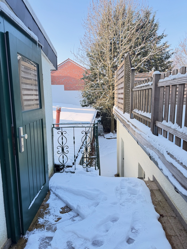Das Kellergeschoss ist vollständig ausgebaut und bietet mit ca. 116,02 m² viel zusätzliche Nutzfläche. Besonders komfortabel ist die im Keller integrierte Doppelgarage mit ca. 83,84 m², die sowohl von der Vorderseite als auch diskret über den hinteren Hofbereich erreichbar ist. So gelangen Sie wettergeschützt und unauffällig direkt ins Haus.