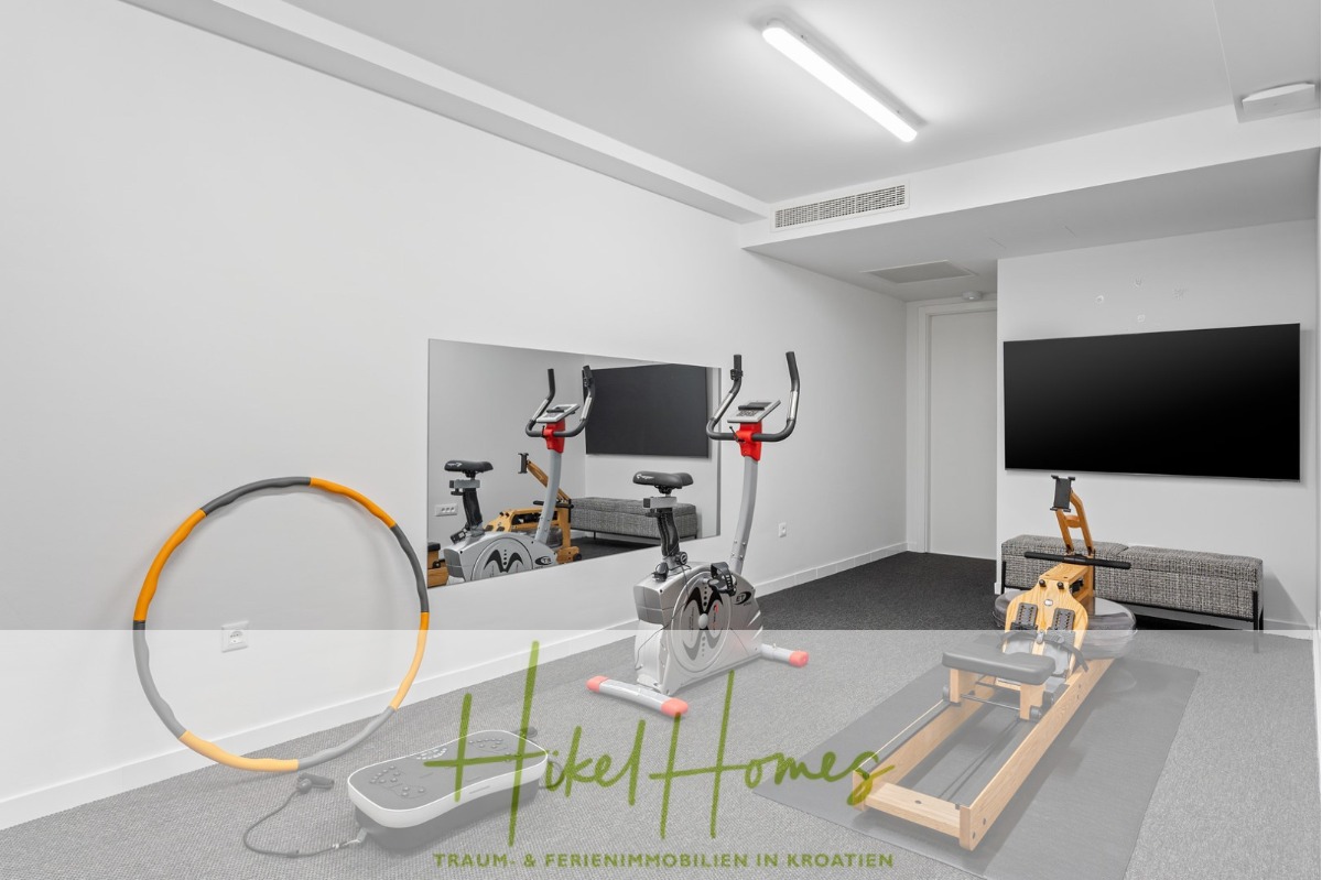 Das Herzstück des Anwesens ist der große, vollautomatische Infinity-Pool, der mit seiner spektakulären Aussicht auf das Adriatische Meer begeistert. Der liebevoll angelegte Garten- und Außenbereich lädt zum Entspannen und Genießen ein – ob auf der sonnigen Terrasse, beim Barbecue oder bei einem Sundowner am Pool.