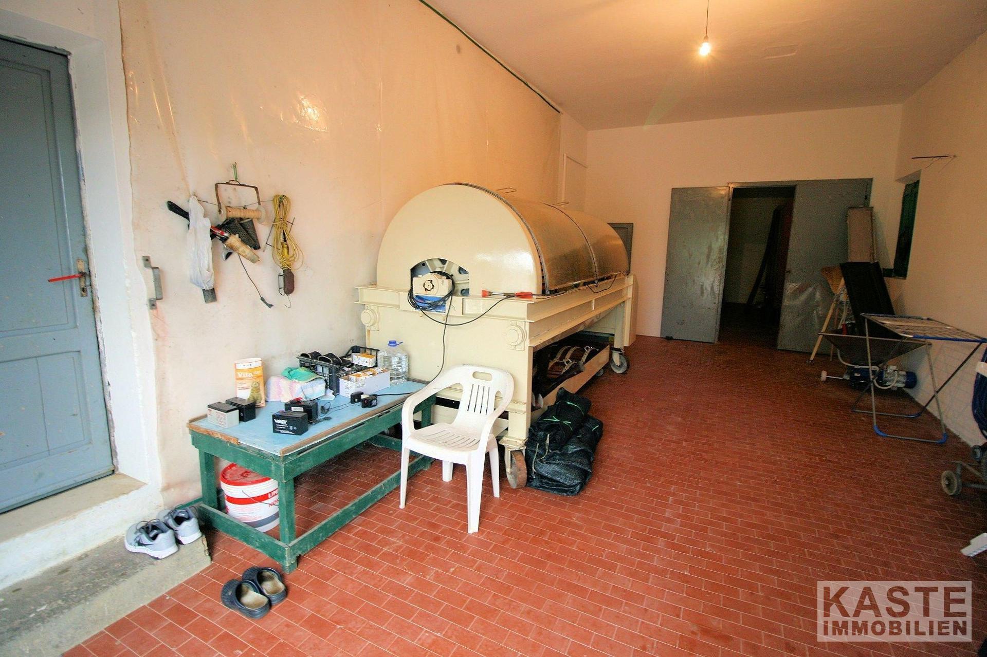 Zwei Wohnungen von je 120 qm. Keller und Lagerräume mit einer Gesamtfläche von 650 qm. Lagerstätte mit einer Fläche von 270 qm.