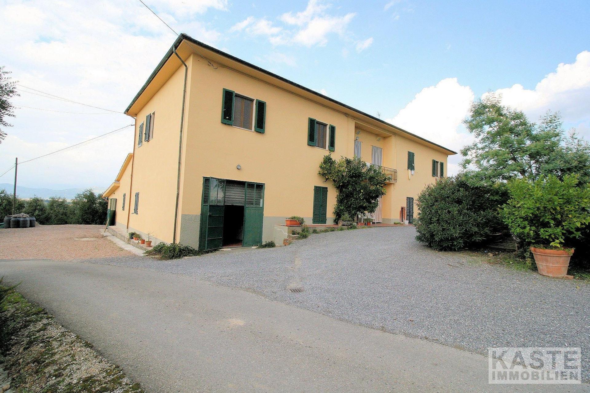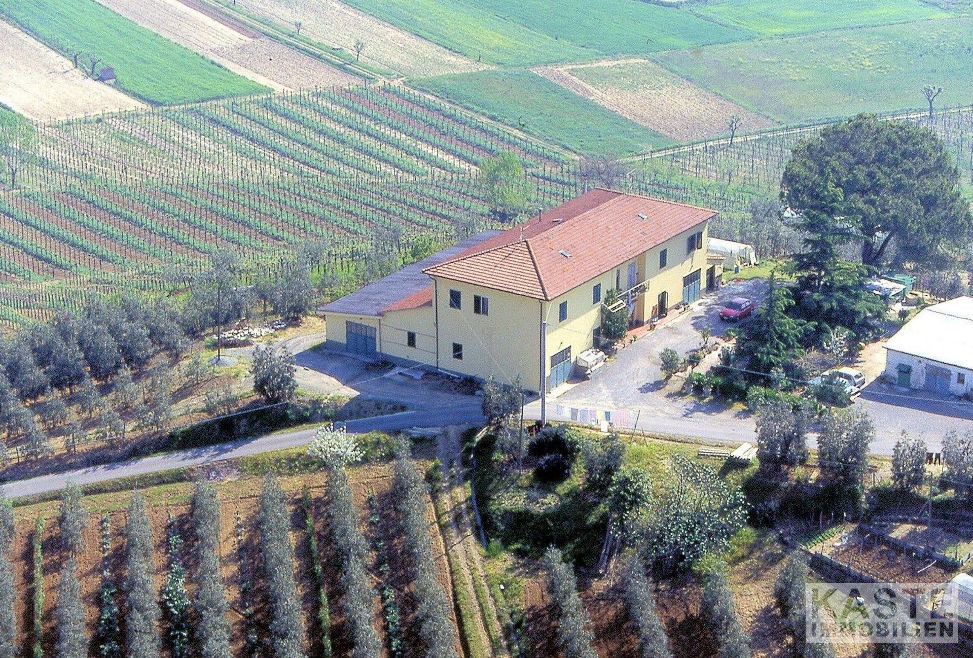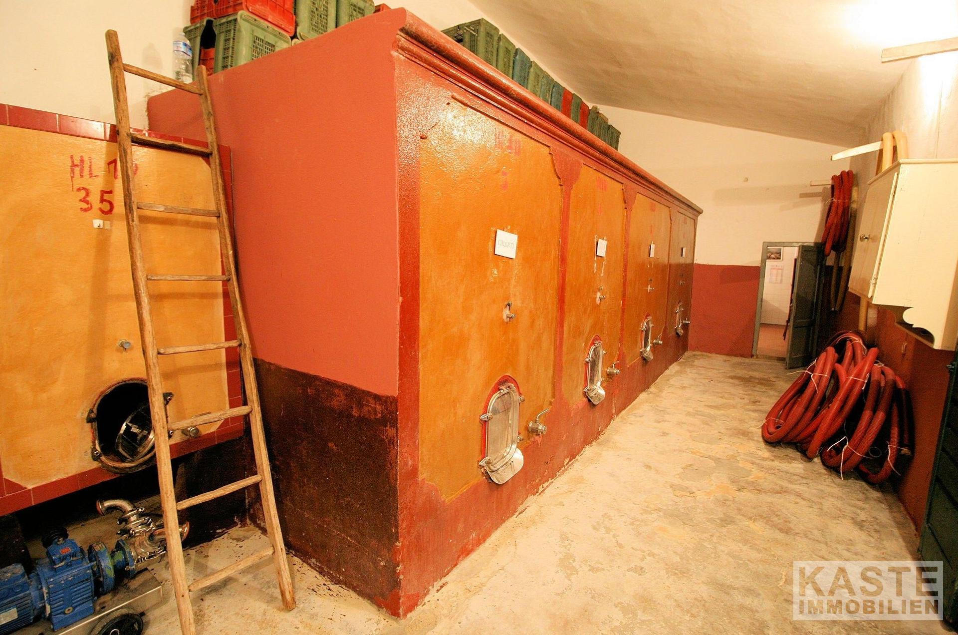 Dieser seit Generationen erfolgreich geführte Betrieb zeichnet sich durch herausragende Ergebnisse in der Produktion von Chianti und IGT-Weinen sowie Olivenöl aus. Das Herrenhaus, das auf einem Hügel thront und eine dominante Position auf dem gesamten Gelände einnimmt, besteht aus zwei separaten Wohnungen, jede mit einer großzügigen Wohnfläche von 120 Quadratmetern. Im Erdgeschoss des Haupthauses befindet sich zudem ein Keller, der dem Wein- und Olivenölgeschäft des Weinguts dient.