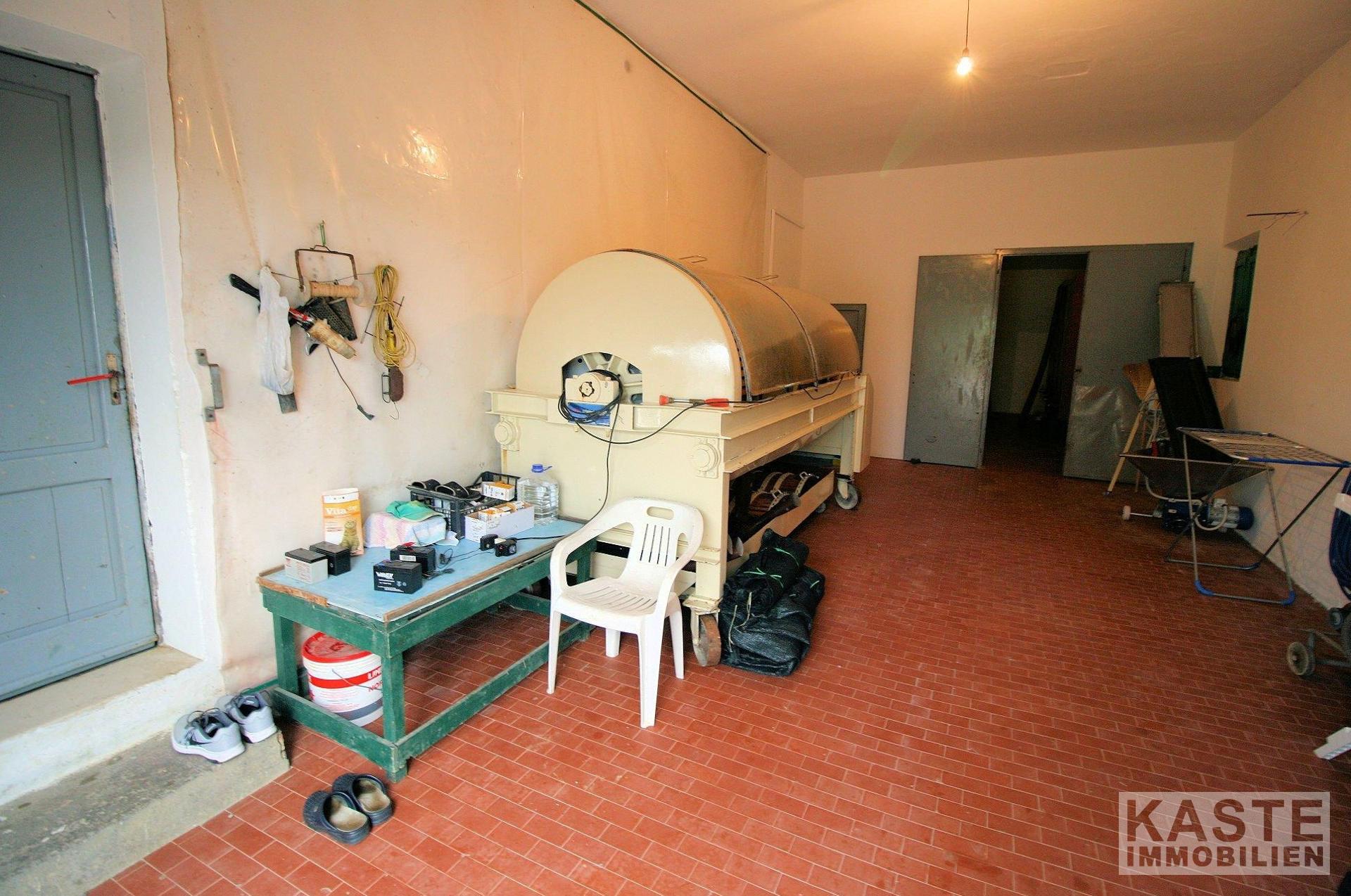 Zwei Wohnungen von je 120 qm. Keller und Lagerräume mit einer Gesamtfläche von 650 qm. Lagerstätte mit einer Fläche von 270 qm.