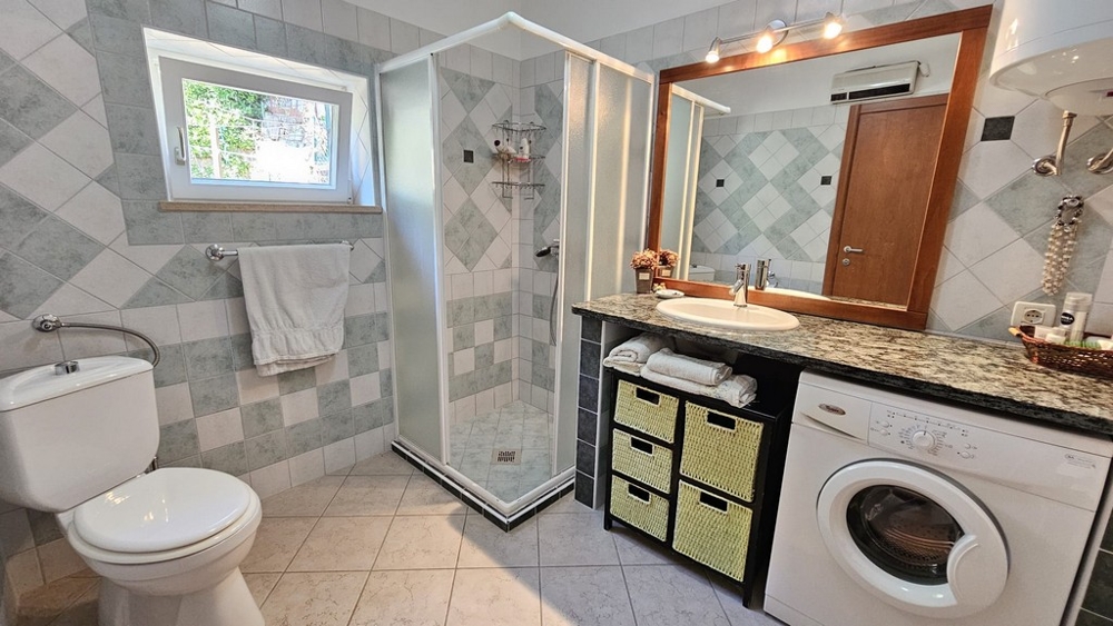 Die Immobilie ist in zwei Wohneinheiten aufgeteilt. Die erste, eine Maisonette im Erd- und Obergeschoss, verfügt über zwei Schlafzimmer, ein Badezimmer, einen Wohnbereich, eine Küche mit Esszimmer sowie ein zusätzliches Zimmer. Im Dachgeschoss befindet sich die zweite Wohnung mit zwei Schlafzimmern, einem Badezimmer, einem Wohnbereich und einer großzügigen Terrasse mit Blick auf das Meer.