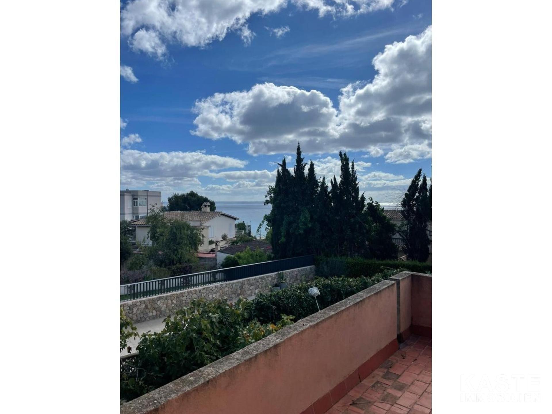 Doppelhaushälfte zum Renovieren in 6 Wohnungen oder als Stadthaus mit 5 Schlafzimmern, 3 Bädern, 180m2 gebaut mit einer Terrasse von 73m2, Schwimmbad von 29m2, Veranda Terrasse mit Grill, Einbauschränke, private Garage, Öl-Zentralheizung, bereit zum Einzug oder Renovierung Projekt, Bergblick und teilweise Meerblick auf einem Grundstück von 640m2